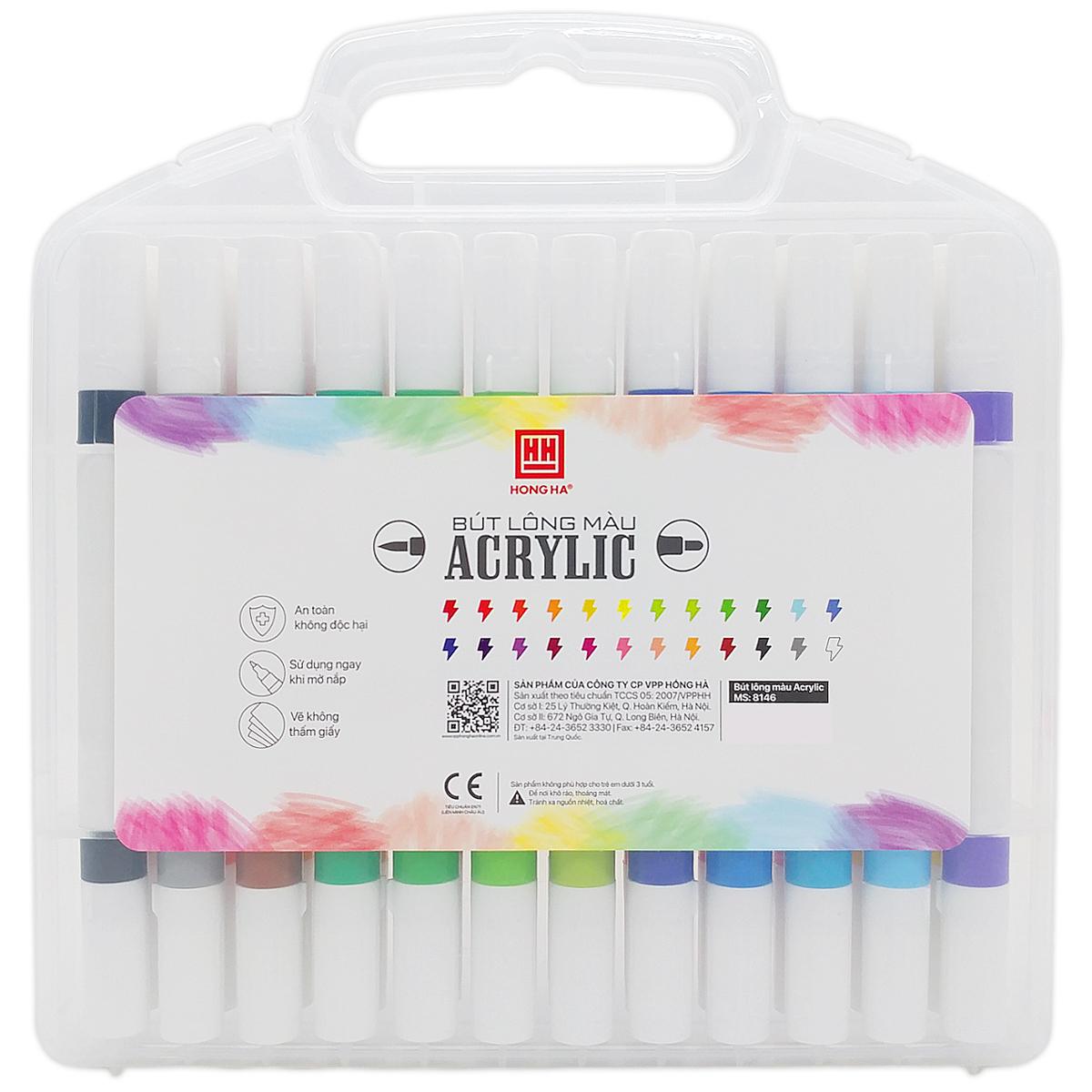 Mua tại TiktokHộp 24 Bút Lông Màu Acrylic 2 Đầu - Hồng Hà 8146 phù hợp cho mọi đối tượng từ học sinh đến người vẽ chuyên nghiệp.