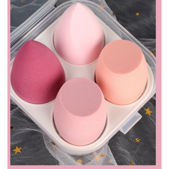 Set 4 Mút Trang Điểm Tán Phấn Giọt Nước Hộp Nhựa Vuông [BECO - BC1448]