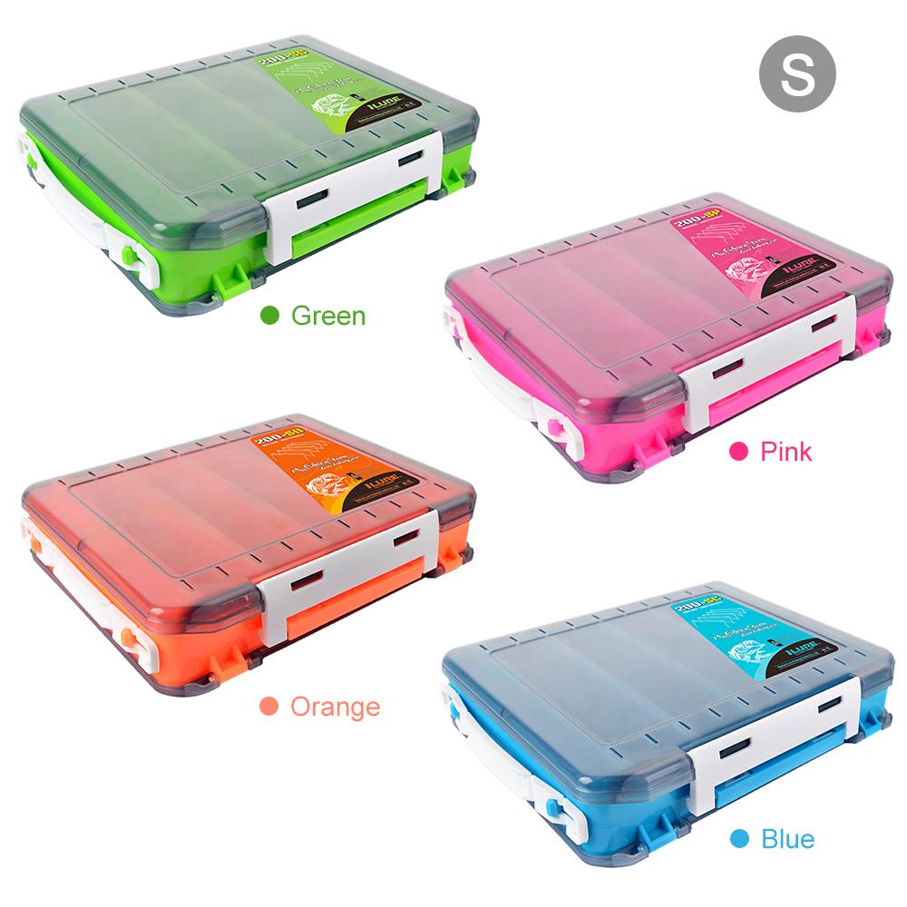Double-sided fishing box helps keep your fishing accessories organized. Features: High-strength plastic material for durability. Double sided design keep your fishing accessories organized. Clear lids make the contents visible. Built-in drainage holes keep the box