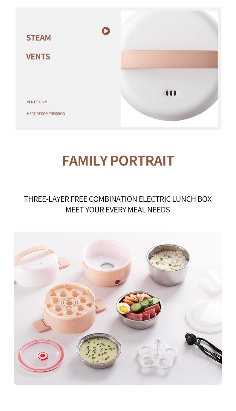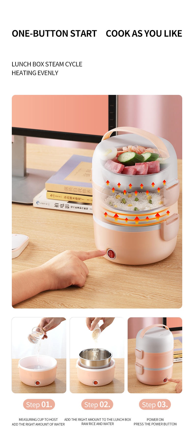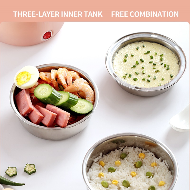 Hộp Cơm Điện Cặp Lồng Điện Hâm Cơm Tự Động 3 Tầng PS-103 - Màu Ngẫu Nhiên - Hàng Chính Hãng: hâm nóng, nấu, hấp, luộc, tại nơi làm việc hoặc nơi không tiện dùng bếp để hâm nóng thức ăn