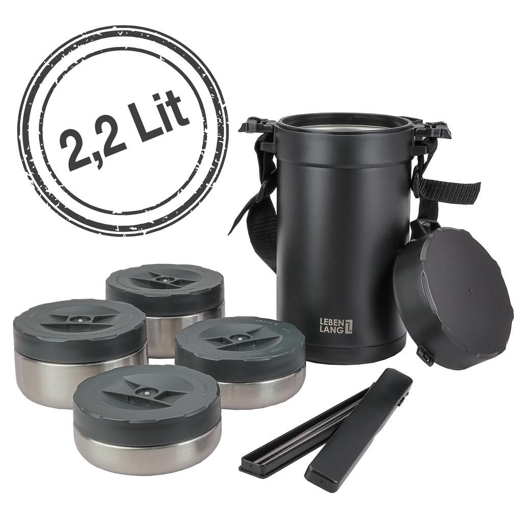 Cà men hộp cơm giữ nhiệt LEBENLANG LBT856 bằng inox, gồm 4 khay riêng biệt dung tích 2.2L - hàng chính hãng