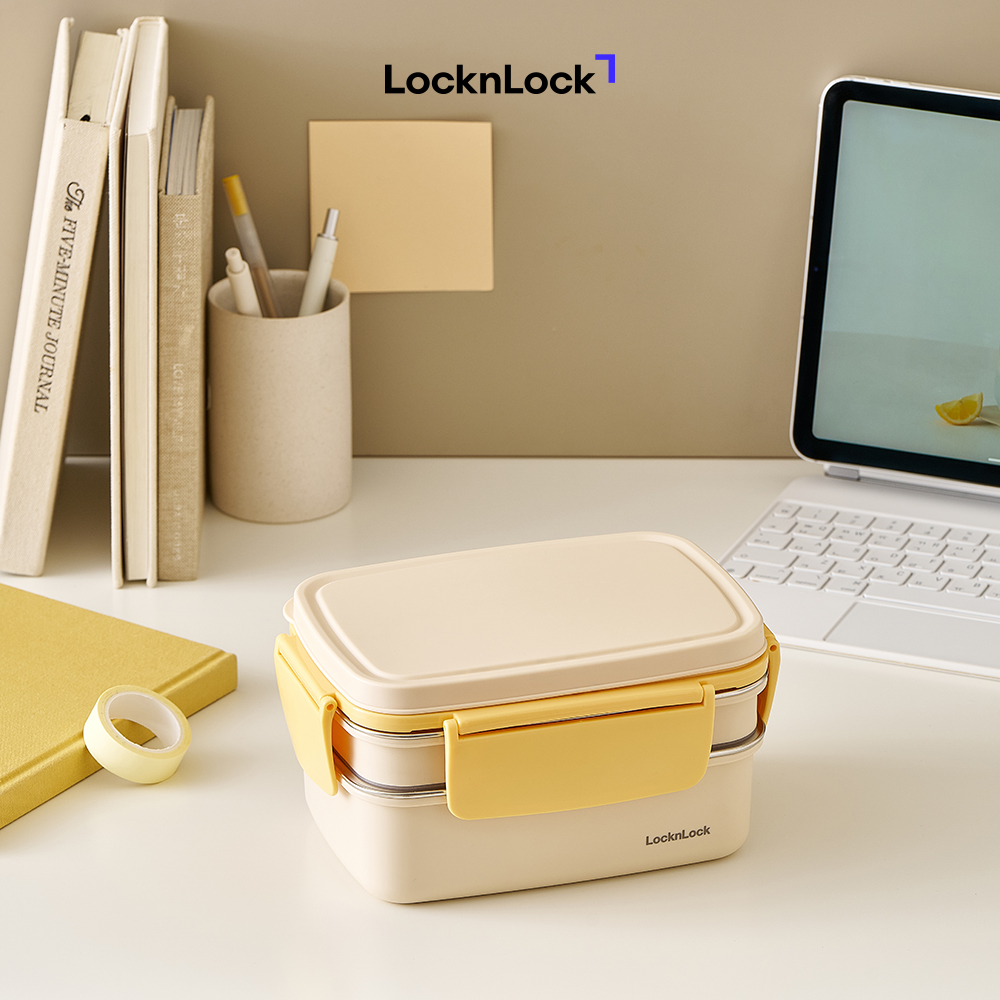 Hộp Cơm Inox 2 Tầng LocknLock LCB500 1.6L, Hàng Chính Hãng, Chia Ngăn, Thép Không Gỉ