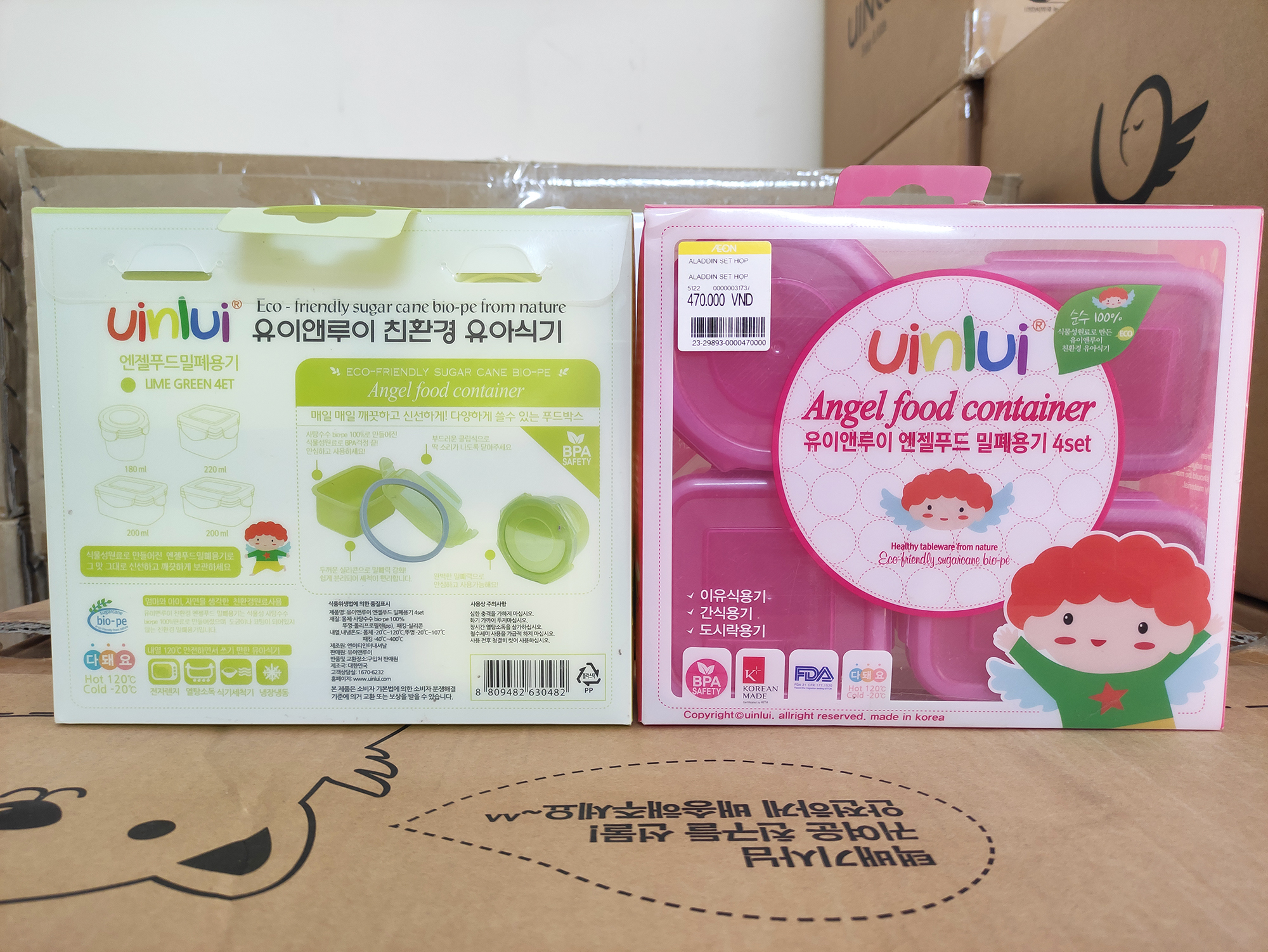 ✨Hộp đựng đồ ăn dặm an toàn - Set 4 hộp kín Angel food UINLUI