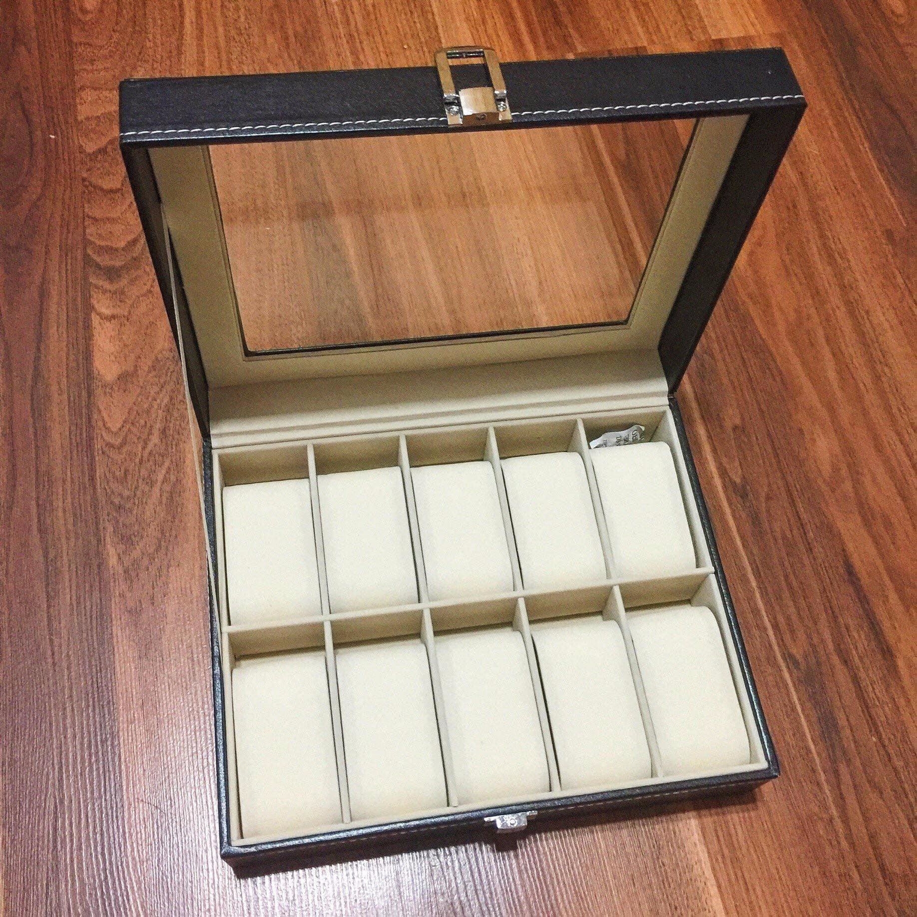 So sánh hộp đựng đồng hồ trưng bày 10 ngăn bằng da và bằng gỗ 0866000477