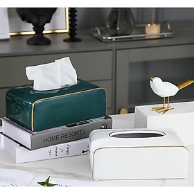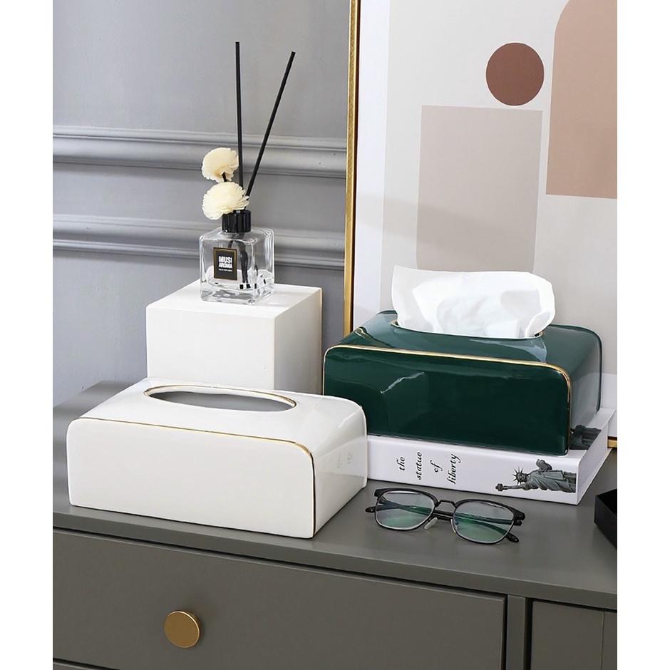 ✨HỘP ĐỰNG KHĂN GIẤY GIẤY ĂN BẰNG GỐM SỨ CÁO CẤP MÀU XANH NGỌC VIỀN VÀNG
