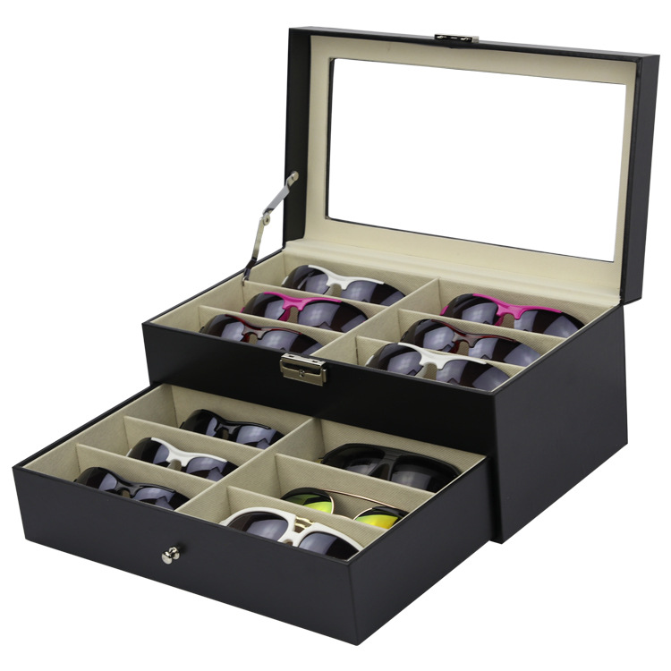 - Hộp Đựng Mắt Kính 12 Cái SAIKE S838 Bọc Da Màu Đen 2 Tầng