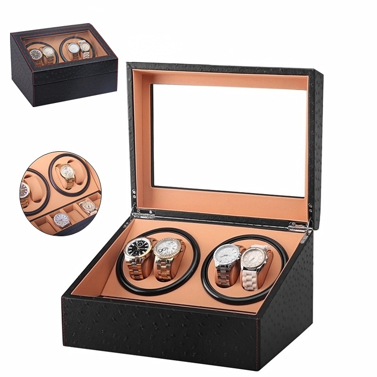 Hộp Lắc Đồng Hồ Cơ SAIKE S4603 Mẫu 4 Xoay 6 Tĩnh Vỏ Da Đà Điểu Cao Cấp