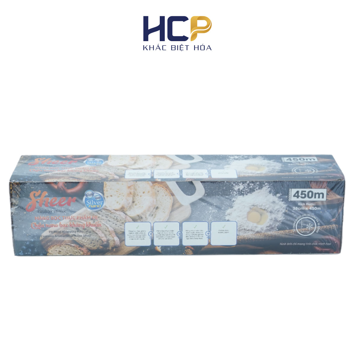• HCP chuyên sản xuất màng căng công nghiệp, màng bọc thực phẩm PE và cung cấp các sản phẩm gia dụng khác như giấy bạc nướng, giấy thấm dầu và găng tay TPE.