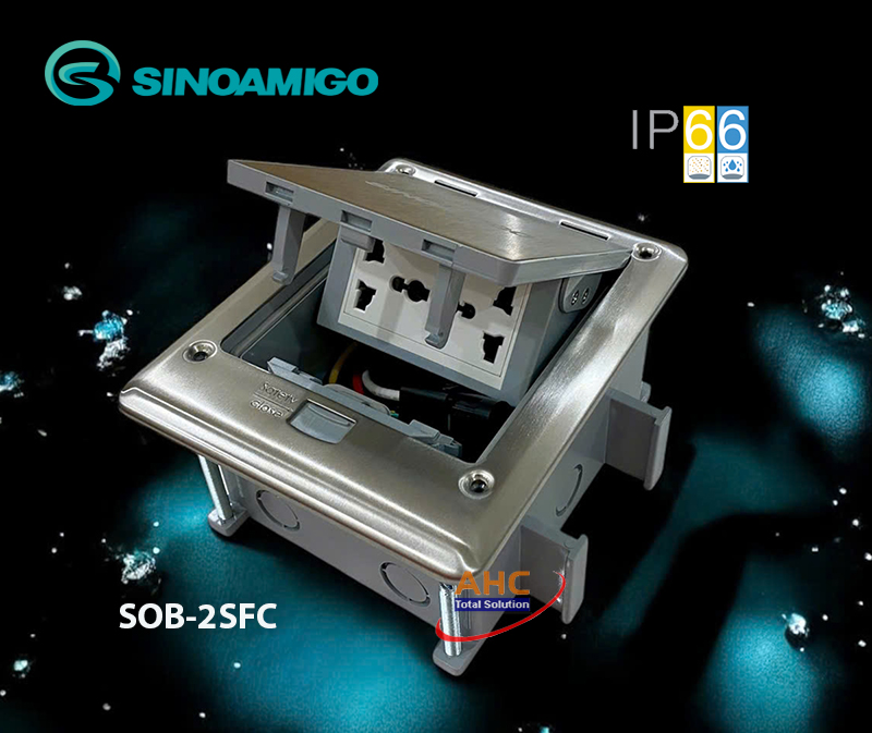 Hộp ổ cắm âm sàn chống thấm nước IP66 Sinoamigo SOB-2SFC