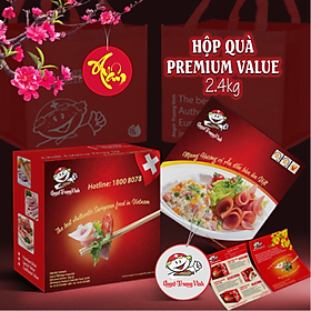 Hộp quà Premium Value 2.4Kg là hộp quà gồm các sản phẩm thịt nguội chất lượng cao, được đóng gói đẹp mắt, dùng làm quà biếu bạn bè, người thân, đối tác vào các dịp đặc biệt, Lễ Tết thay cho các hộp quà truyền thống. Hộp quà bao gồm các sản phẩm: