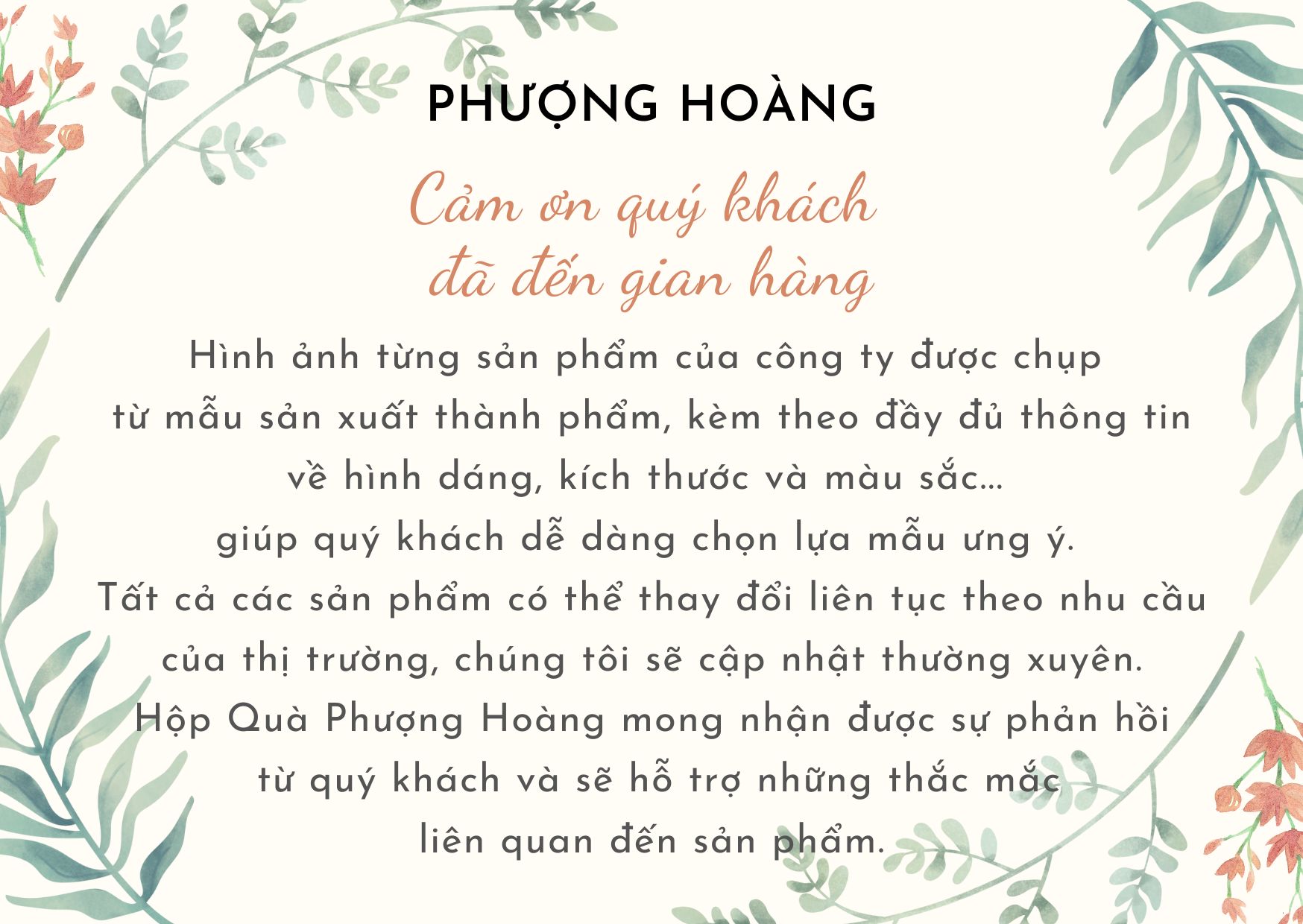 *** LƯU Ý: Giao hàng màu sắc ngẫu nhiên Hộp quà Phượng Hoàng được sản xuất dựa trên chất liệu giấy đa dạng như Ivory, Kraft, Mỹ thuật với nhiều kích thước từ nhỏ đến lớn và mẫu mã. Công ty Phượng Hoàng với hơn 20 năm kinh nghiệm luôn thay đổi mới mẫu mã sản xuất đa dạng về kiểu dáng và màu sắc thiết kế từ đơn giản, nhẹ nhàng cho đến những mẫu túi nhiều màu sắc rực rỡ, bắt mắt để quý khách hàng từ doanh nghiệp, cá nhân đều dễ dàng chọn lựa mẫu hộp quà vừa ý mình.