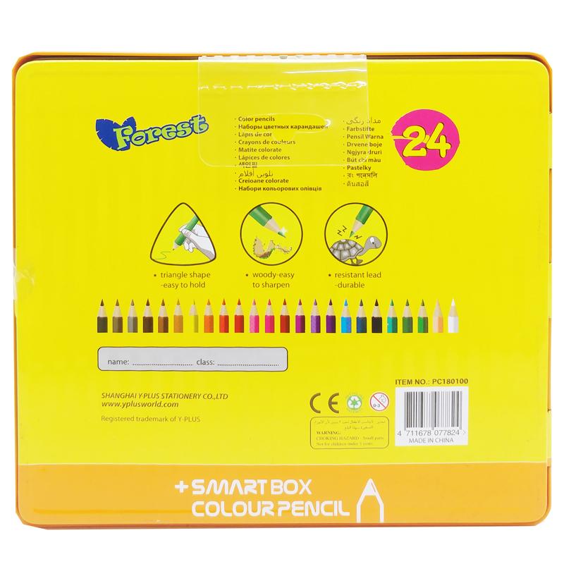 Hộp Thiếc 24 Bút Chì Màu Forest - Y PLUS+ PC180100 - Thiết kế thân bút bằng gỗ với phần ruột chì mềm, bền, dễ chuốt hạn chế gãy ngòi khi vẽ. - Chất chì