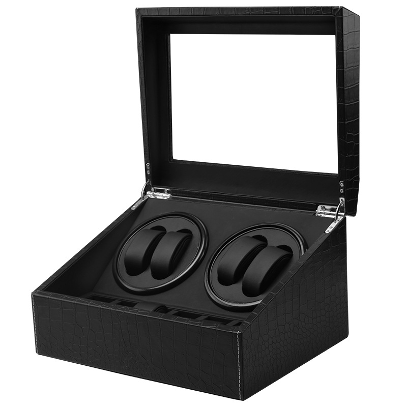 Hộp Xoay Đồng Hồ Cơ SAIKE S4602 Mẫu 4 Xoay 6 Tĩnh Vỏ Da Cá Sấu Màu Đen