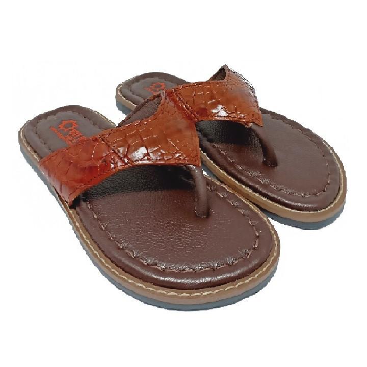 Dép kẹp nam da cá sấu thật nâu đất VR360