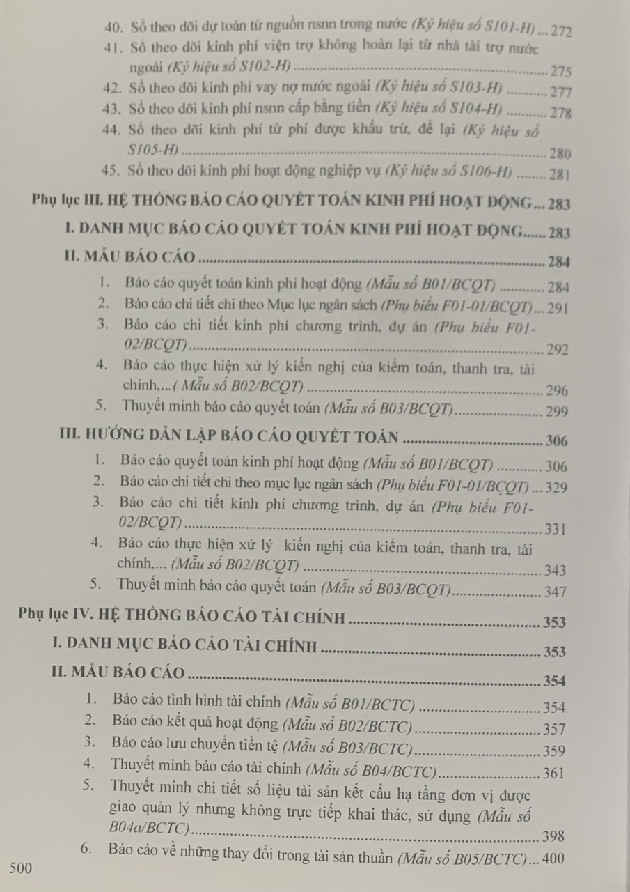 Phụ lục IV. HỆ THỐNG BÁO CÁO TÀI CHÍNH.