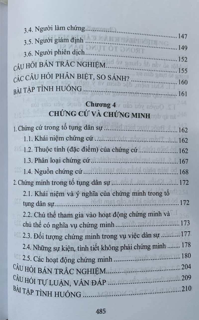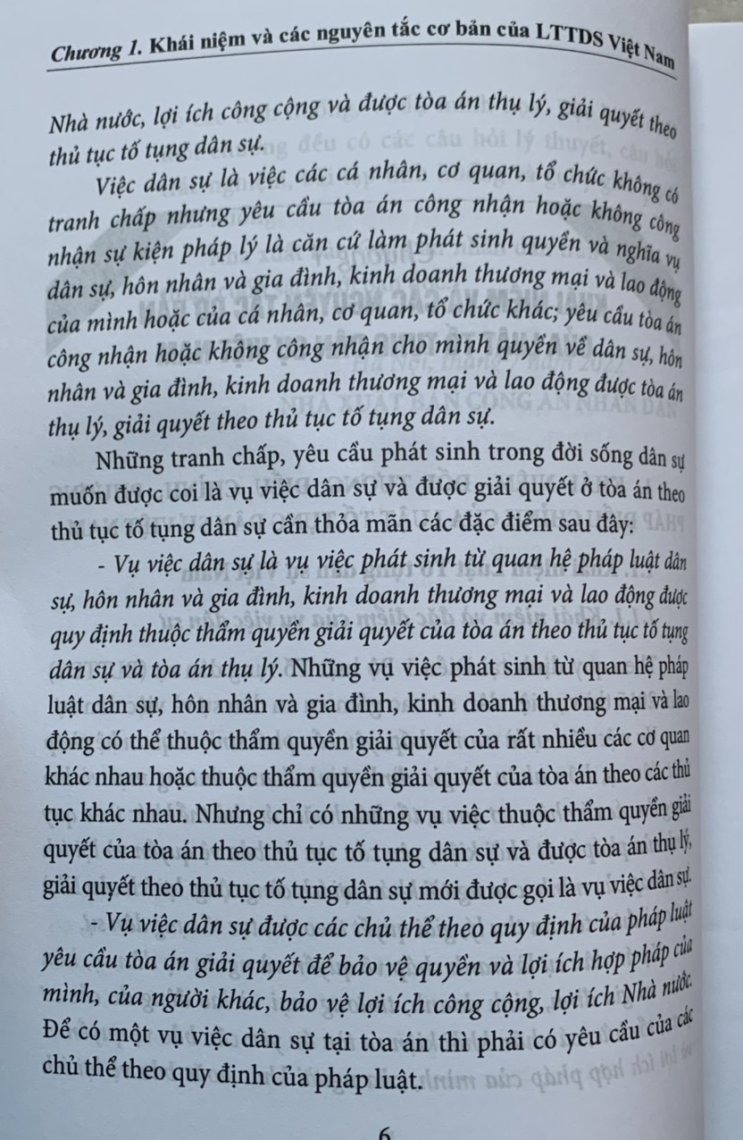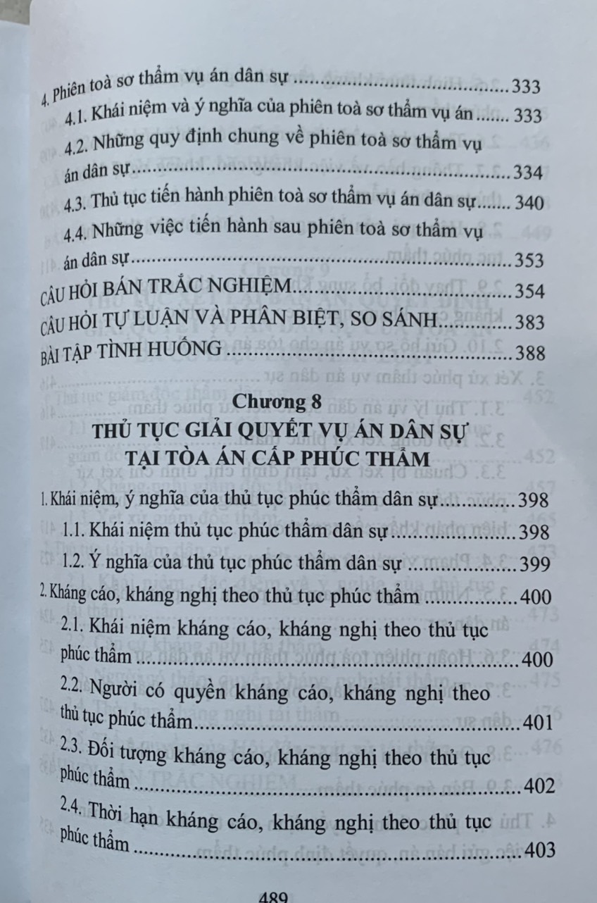 Cuốn sách được chia thành 9 chương, trong đó mỗi chương trình bày cô đọng những nội dung cơ bản về những vấn đề chung của luật tố tụng dân sự Việt Nam và thủ tục giải quyết các vụ án dân sự. Mỗi mục ngoài phần trình bày những kiến thức,lý luận cơ bản, quy định của pháp luật cơ bản, quy định của pháp luật hiện hành còn có các tình huống, ví dụ minh họa. Đặc biệt cuối mỗi chương đều có các câu hỏi lý thuyết , câu hỏi trắc nghiệm, bài tập tình huống và gợi ý giải quyết tình huống .