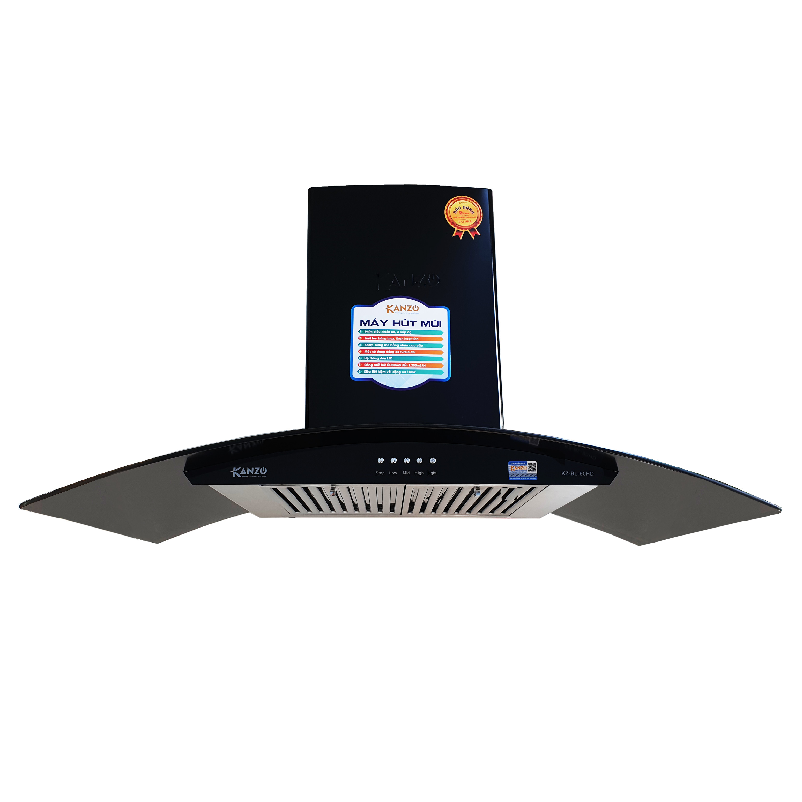 ✨Hút mùi kính cong 900mm Kanzo KZ-BL-90HD - Bảo hành điện tử 2 năm - Hàng chính hãng