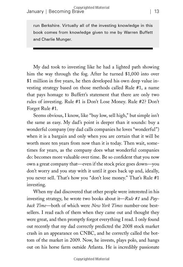 Growing up, the words finance, savings, and portfolio made Danielle Town’s eyes glaze over, and the thought of stocks and financial statements shut down her brain. The daughter of a successful investor and bestselling financial author of Rule #1, Phil Town, she spent most of her adult life avoiding investing—until she realized that her time-consuming career as lawyer was making her feel anything but in control of her life or her money. Determined to regain her freedom, vote for her values with her money, and deal with her fear of the unpredictable stock market, she turned to her father, Phil, to help her take charge of her life and her future through Warren Buffett-style value investing. Over the course of a year, Danielle went from avoiding everything to do with the financial industrial complex to knowing exactly how and when to invest in wonderful companies.