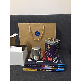 SẢN PHẨM GỒM: - 1 hộp quà: túi cà phê chồn 500g + 1 phin cafe màu anod đẹp - 1 hộp cà phê chồn phin giấy (10 túi x 15g) - 1 hộp cà