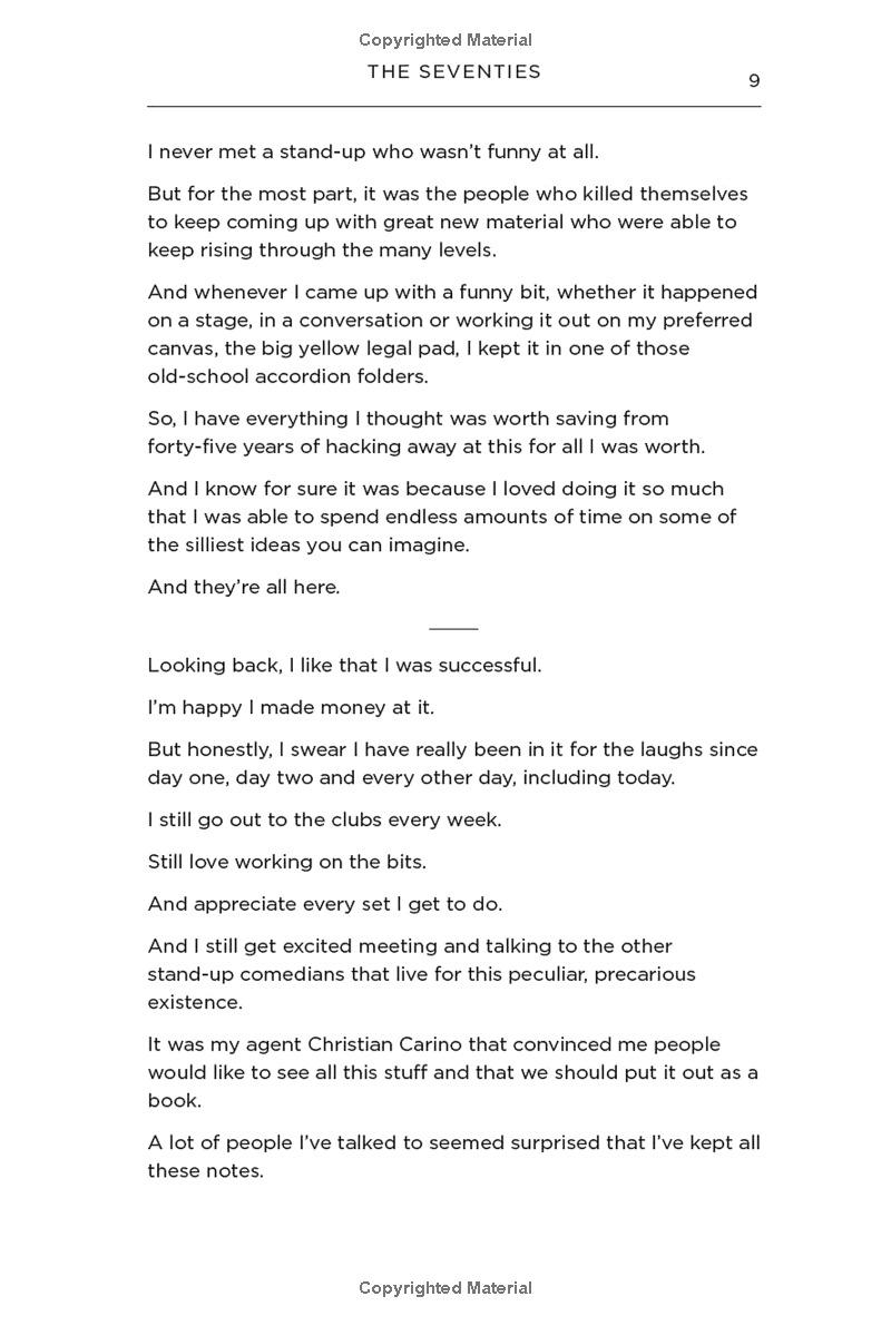 Since his first performance at the legendary New York nightclub “Catch a Rising Star” as a twenty-one-year-old college student in fall of 1975, Jerry Seinfeld has written his own material and saved everything. “Whenever I came up with a funny bit, whether it happened on a stage, in a conversation, or working it out on my preferred canvas, the big yellow legal pad, I kept it in one of those old school accordion folders,” Seinfeld writes. “So I have everything I thought was worth saving from forty-five years of hacking away at this for all I was worth.”