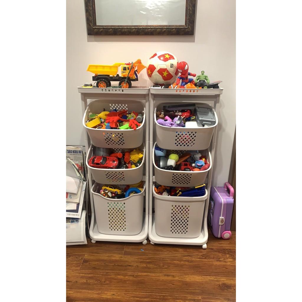 Kệ đa năng 2, 3 tầng nhựa VIỆT NHẬT - Có bánh xe, giỏ xách - Đựng quần áo giặt, đồ chơi bé
