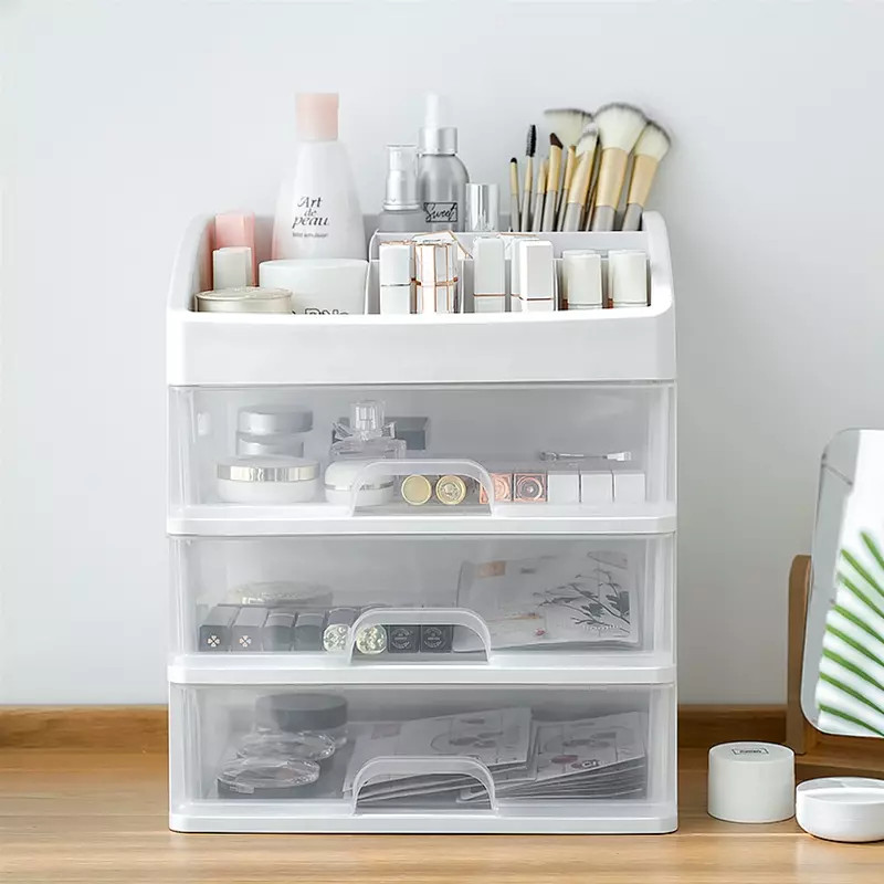 Kệ tủ đựng mỹ phẩm đồ trang điểm mini trong suốt 4 tầng được làm bằng nhựa đúc nguyên khối cao cấp, với thiết kế nhiều ngăn chứa sẽ giúp bạn bảo quản các các loại dụng cụ làm đẹp, mỹ phẩm hoặc các món đồ trang sức luôn được gọn gàng.