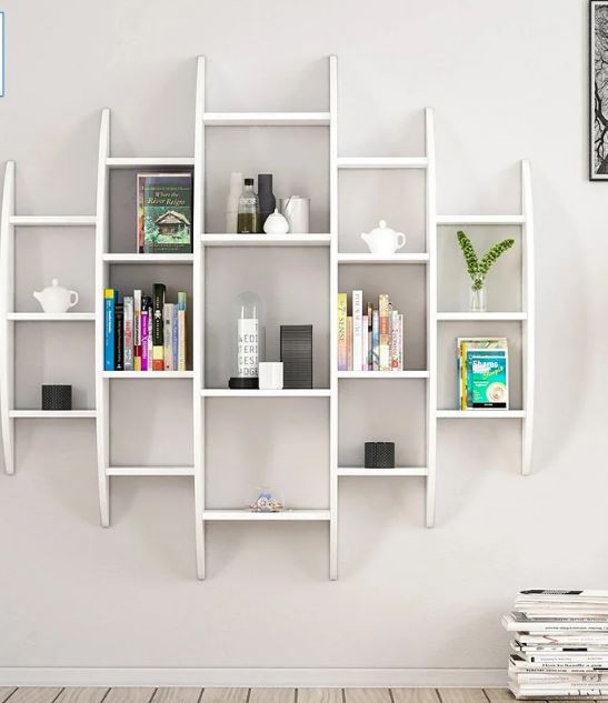 Một sự tổng hòa, cân đối được thể hiện rõ trong chiếc kệ gỗ trang trí treo tường này. Chính bản thân chiếc kệ đã biến không gian xung quanh trở nên đẹp đẽ.