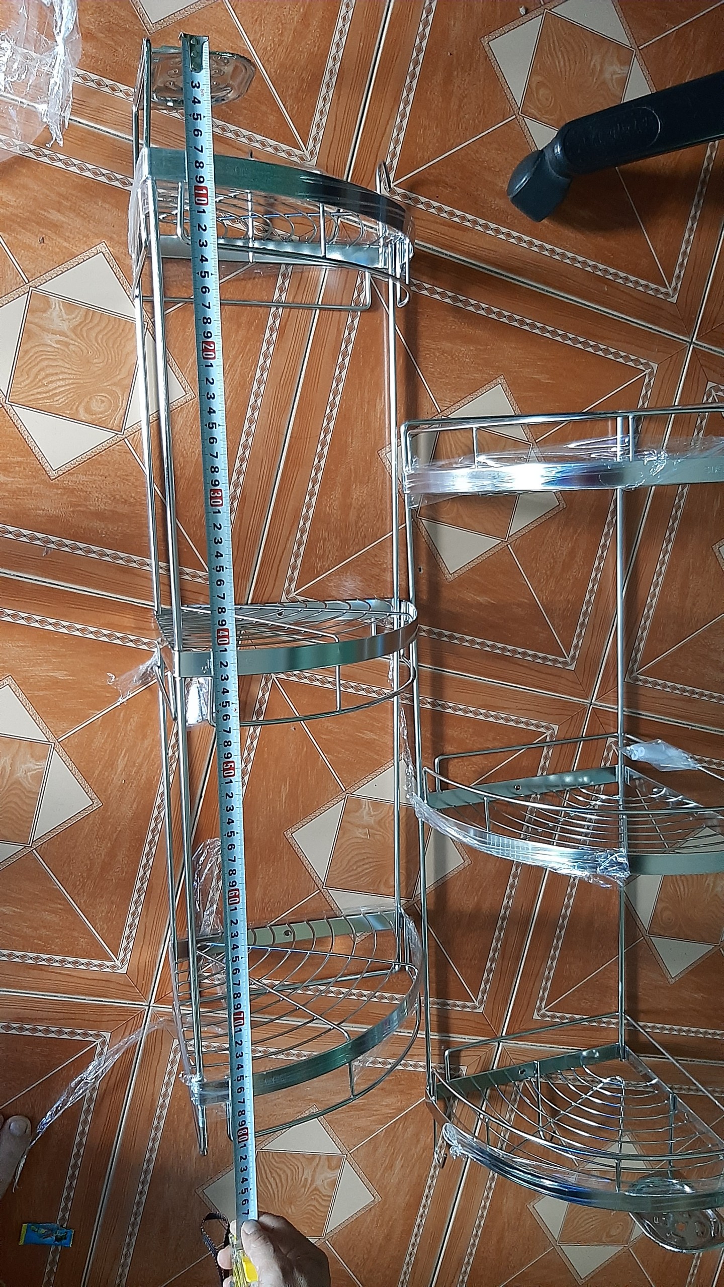 Kệ góc tường nhà tắm hoa văn gấp gọn, 4 tầng đựng đồ không gỉ #viral