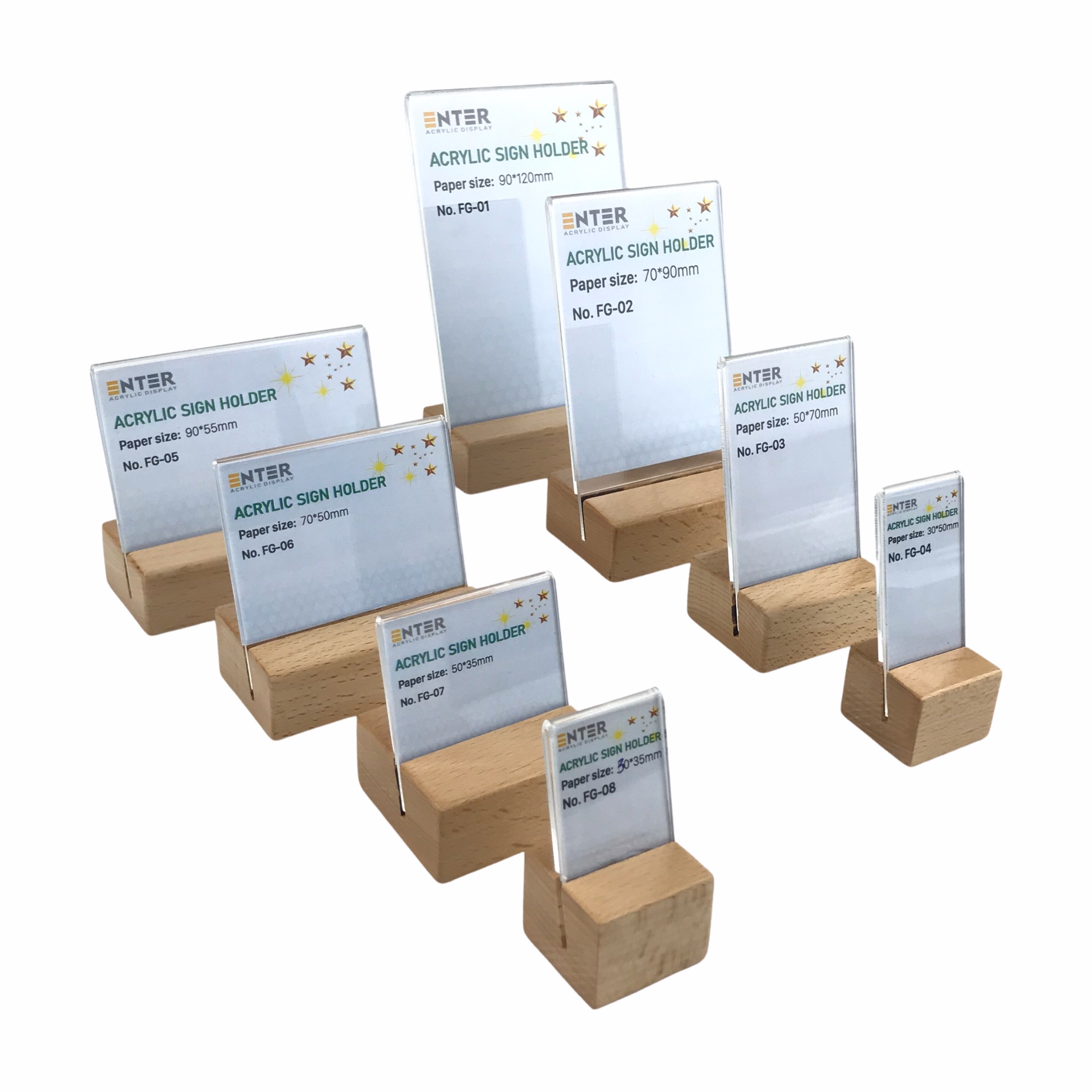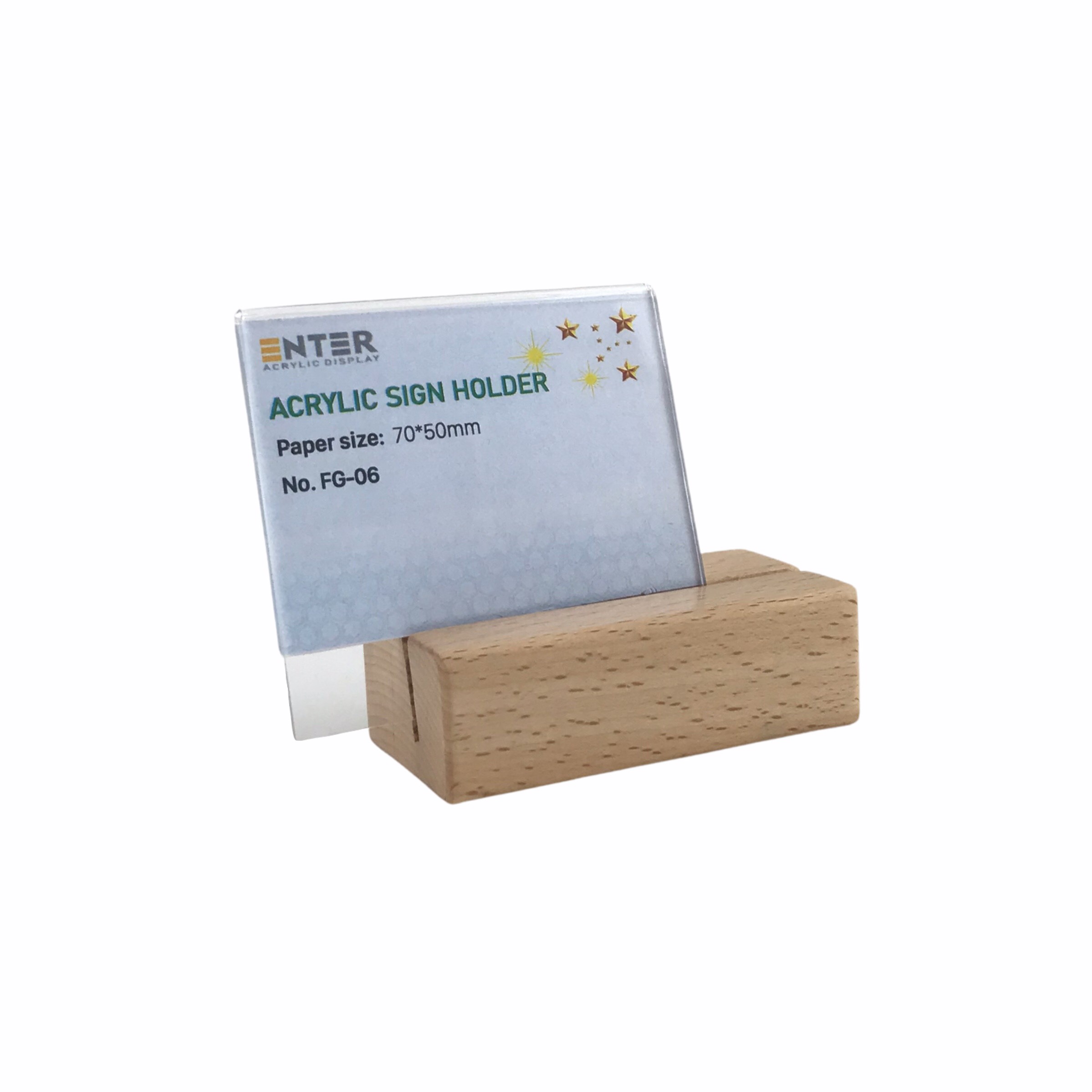 ✨Kệ mica 1 mặt đế gỗ Enter FG-06 70x50mm, Kệ thông tin sản phẩm, Standee mica để bàn, Bảng quét mã QR Code
