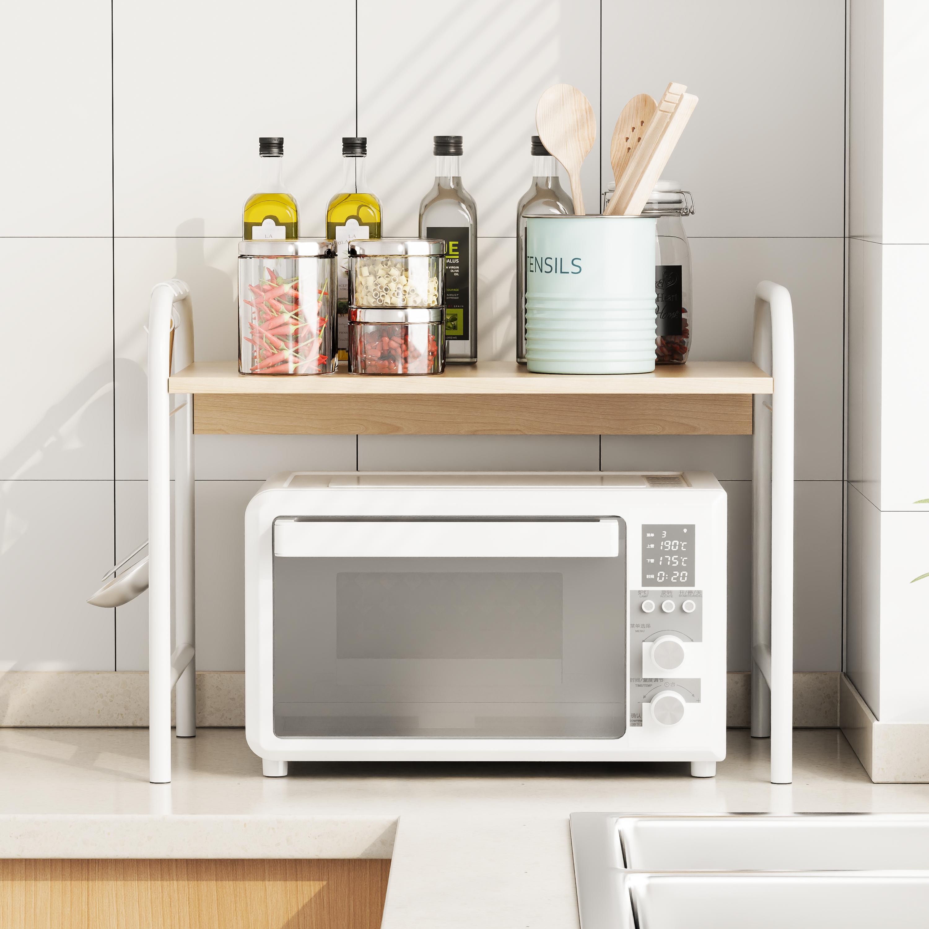 Công năng: Sắp xếp lò vi sóng, đồ dùng,