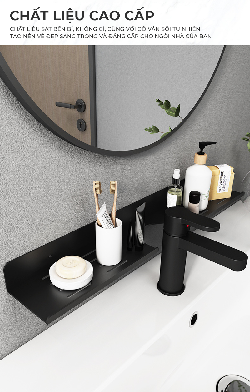 Công năng: Là mẫu kệ nhà tắm dán tường thông minh giúp bạn sắp xếp không gian phòng tắm gọn gàng ngăn nắp.