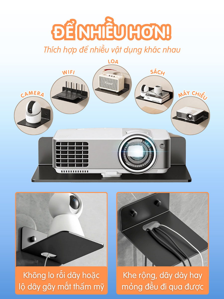 ✨Kệ treo kim loại Dola Home để máy chiếu, camera, bộ phát WiFi, loa, bàn phím không cần khoan đục có lỗ đi dây điện.