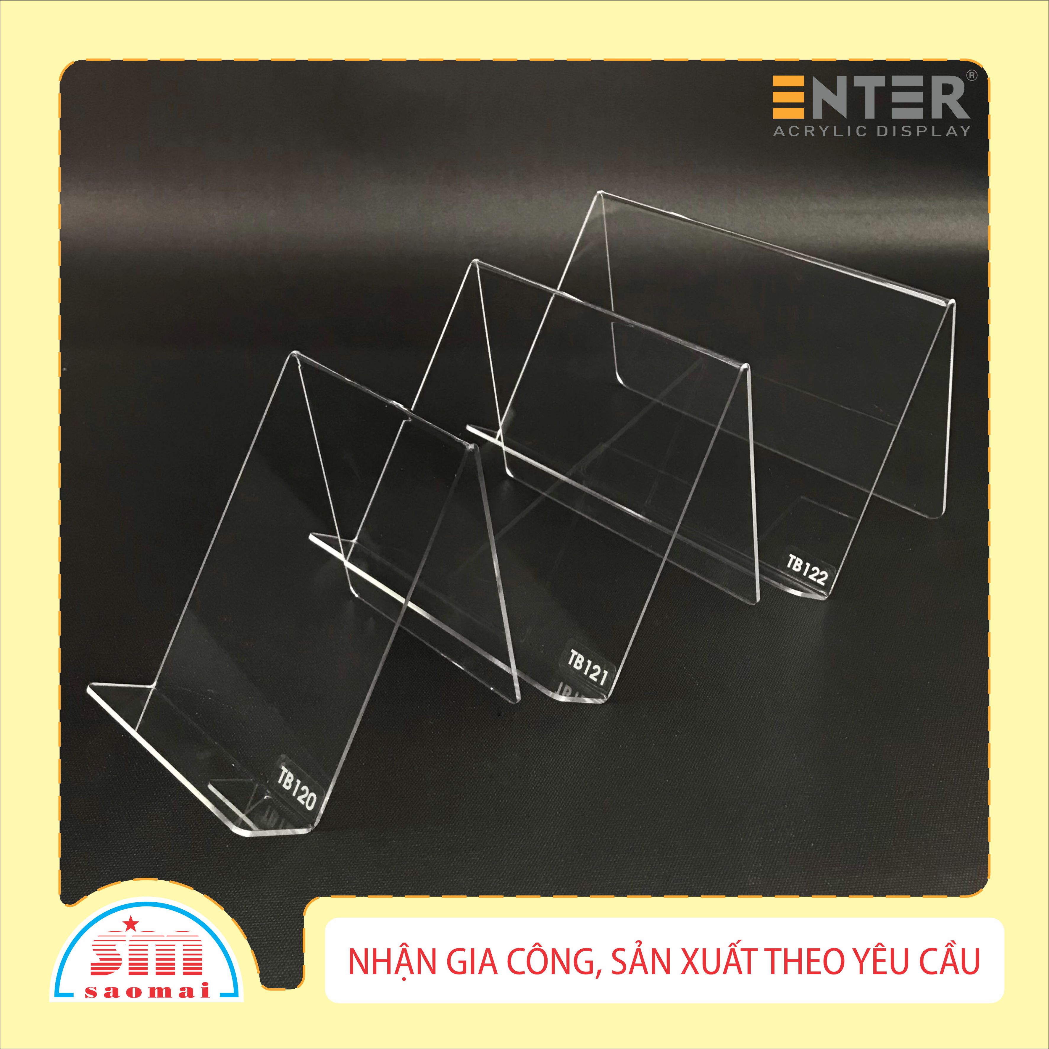 Kệ trưng bày mica chữ V Enter để bàn là sản phẩm làm từ Mica Đài Loan, có công dụng để trưng bày ví, điện thoại... tại các cửa hàng, nhà sách, siêu thị... giúp sản phẩm trở nên sang trọng, đẳng cấp.