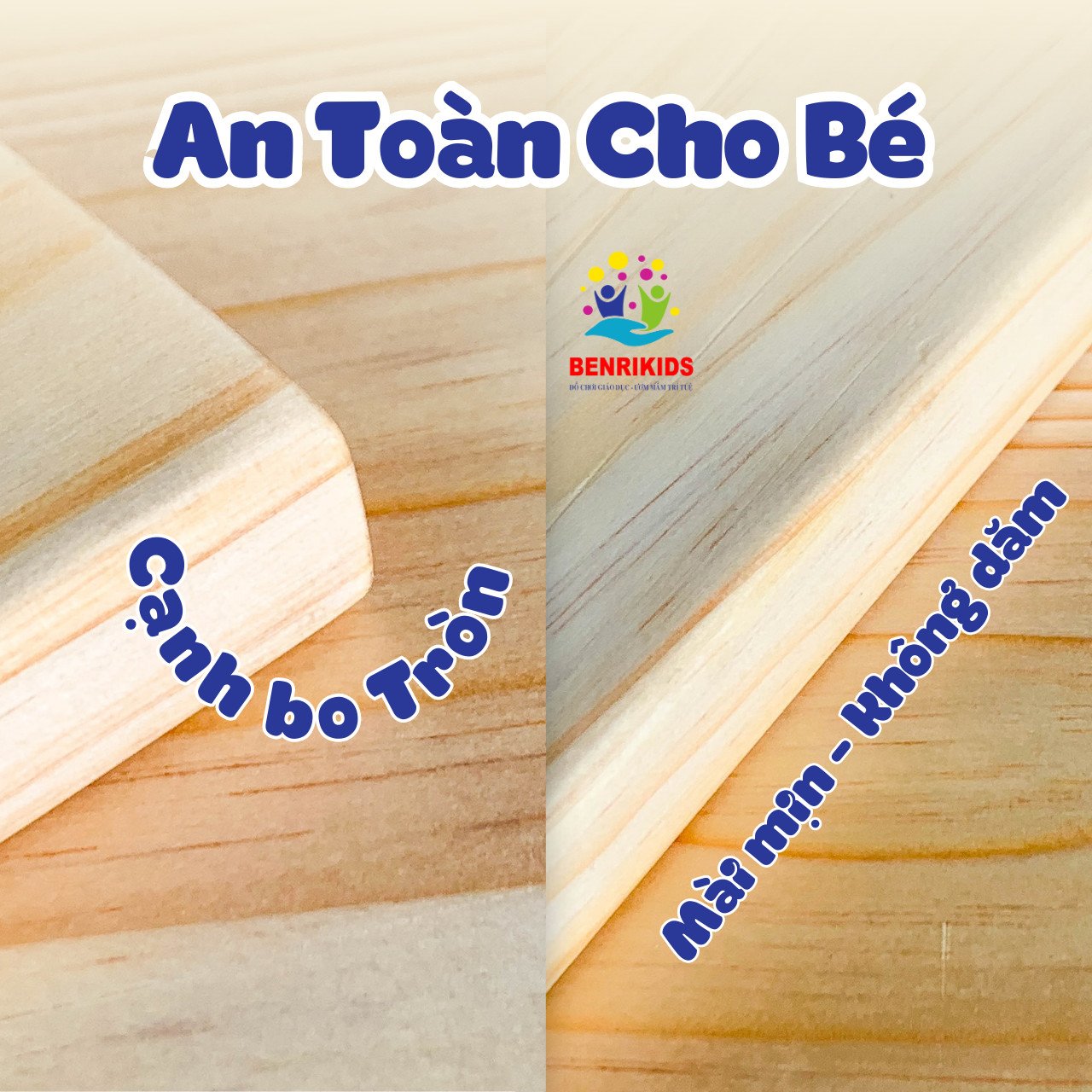 Sản phẩm được làm từ gỗ mịn, không góc cạnh làm trầy xước da bé. Các loại sơn, mực in phù hợp cho sản xuất đồ chơi trẻ em, không chứa độc tố rất