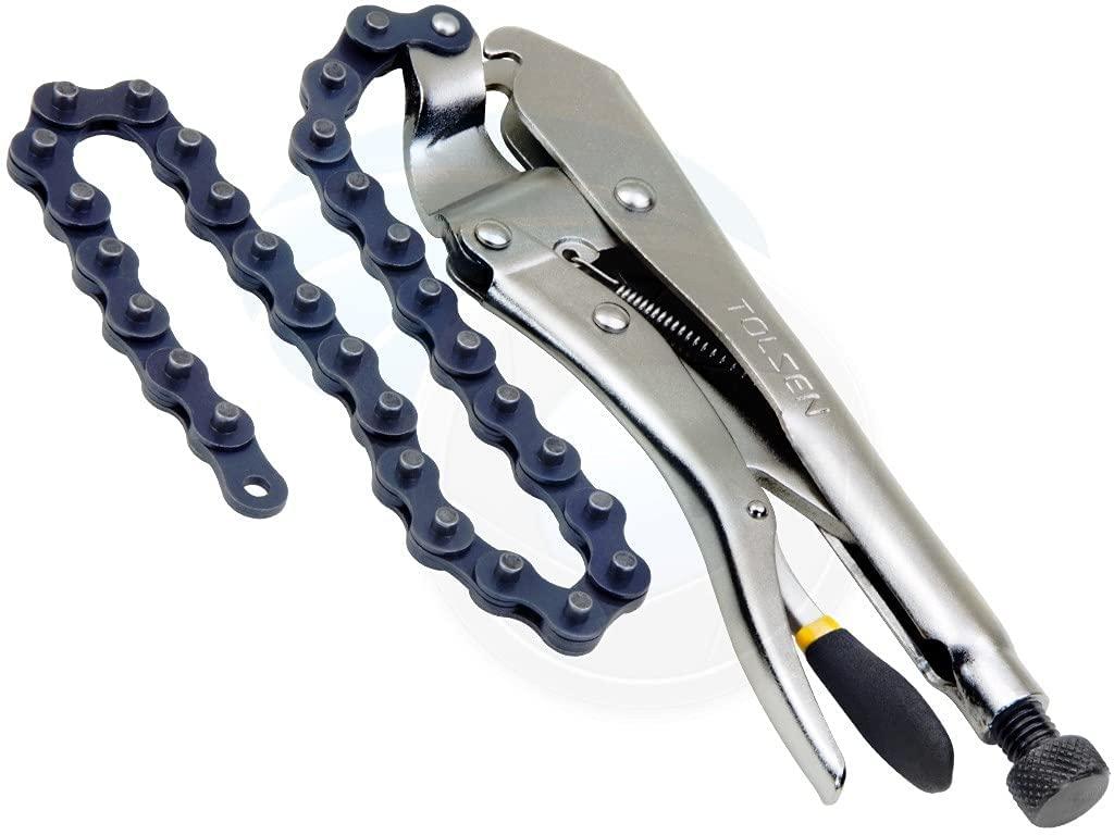 Kềm bấm xích 10 inch Tolsen 10050 là dụng cụ cầm tay chuyên dùng để bấm, kẹp, giữ, tháo mở hoặc vặn siết các loại ống nhựa, tuýp sắt, những vật dụng hình trụ có kích cỡ khác nhau, đặc biệt là các loại ống có đường kính lớn.