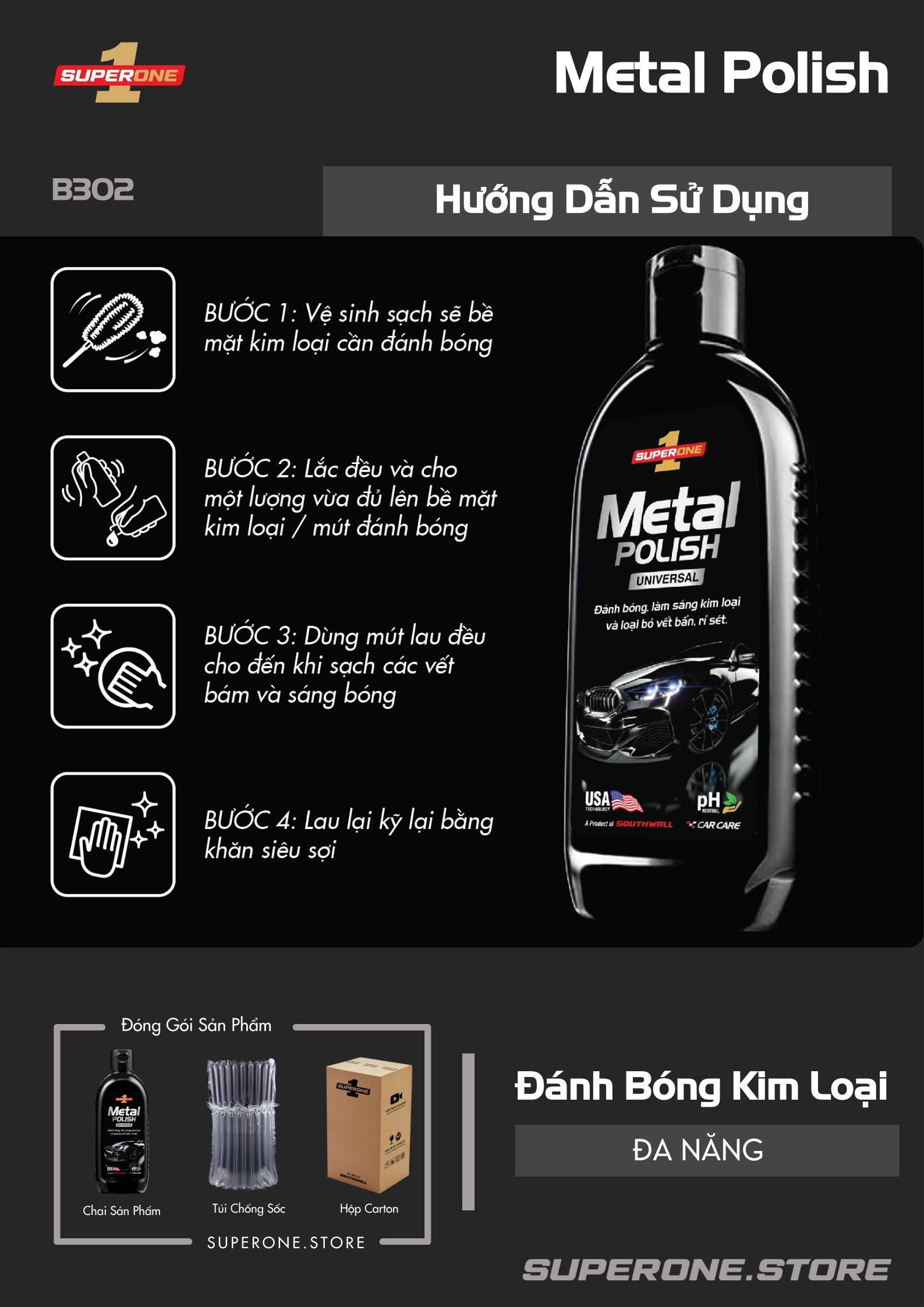 ✨Kem Đánh Bóng Kim Loại SUPERONE Metal Polish - Universal SOUTHWALL B302