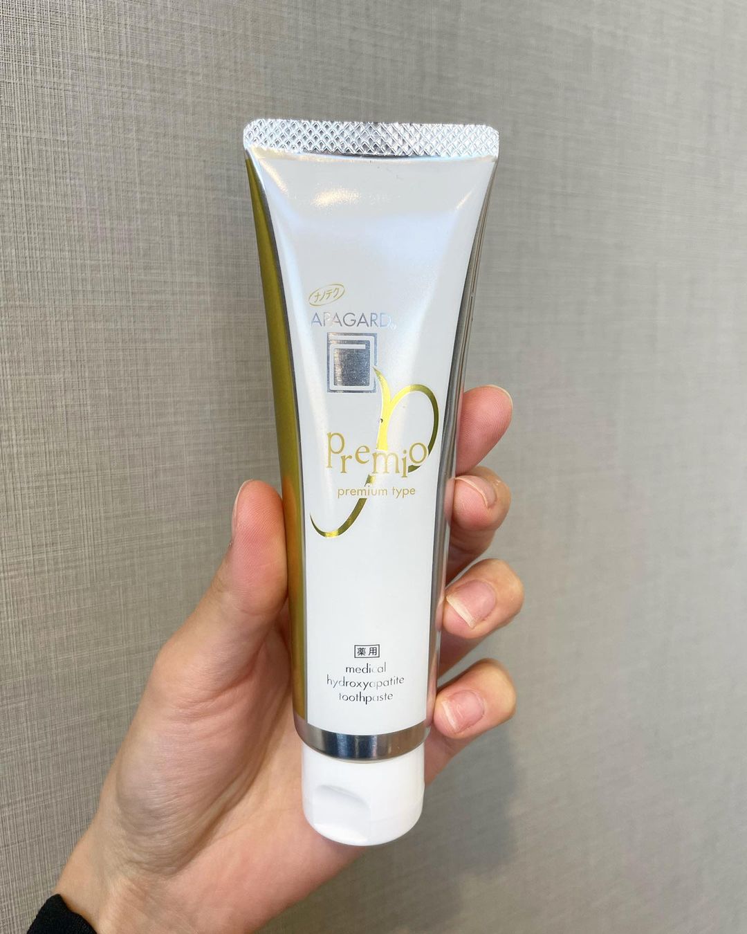 Mua tại TiktokKem Đánh Trắng Răng Cao Cấp Apagard Premio 53g Xuất xứ: Nhật Bản Khối Lượng Tịnh: 53g Mã Vạch: 4987643122190 Công Dụng Kem Đánh Trắng Răng Cao Cấp Apagard Premio 53g: Kem đánh răng giúp loại bỏ vết bẩn, mảng bám trên răng. Ngoài ra, giúp răng chắc khỏe, trắng, bóng sáng. Kem đánh răng giúp thơm miệng sau khi đánh răng. Việc sử dụng kem đánh răng Apagard sẽ làm sáng bóng răng, làm sạch miệng, ngăn ngừa hôi miệng. Hướng dẫn sử dụng: Lấy một lượng vừa phải lên bàn chải, chải đều lên răng sau đó làm sạch bằng nước. Bảo Quản: Tránh để nới quá lạnh và ánh nắng trực tiếp vào sản phẩm, để xa tầm tay trẻ em khi không sử dụng. Lưu Ý: Trong trường hợp thấy bất kỳ hiện tượng phát ban hoặc kích ứng nào sau khi sử dụng sản phẩm này, hãy ngừng sử dụng và tham khảo ý kiến bác sĩ, nha sĩ hoặc dược sĩ. Sản phẩm này là một loại kem đánh răng, vì vậy vui lòng không nuốt. Thành Phần Kem Đánh Trắng Răng Cao Cấp Apagard Premio 53g: Aqua, Dicalcium Phosphate, Glycerin, Hydroxyapatite, Peg-8, Glycyrrhetinic Acid, Cetylpyridinium Chloride, Xylitol, Sodium Silicate, Silica, Sodium Lauryl Sulfate, Cellulose Gum, Flavor, Hydrolyzed Conchiolin Protein, Sodium Saccharin, Trimagnesium Phosphate, Lauryl Diethylenediaminoglycine Hcl