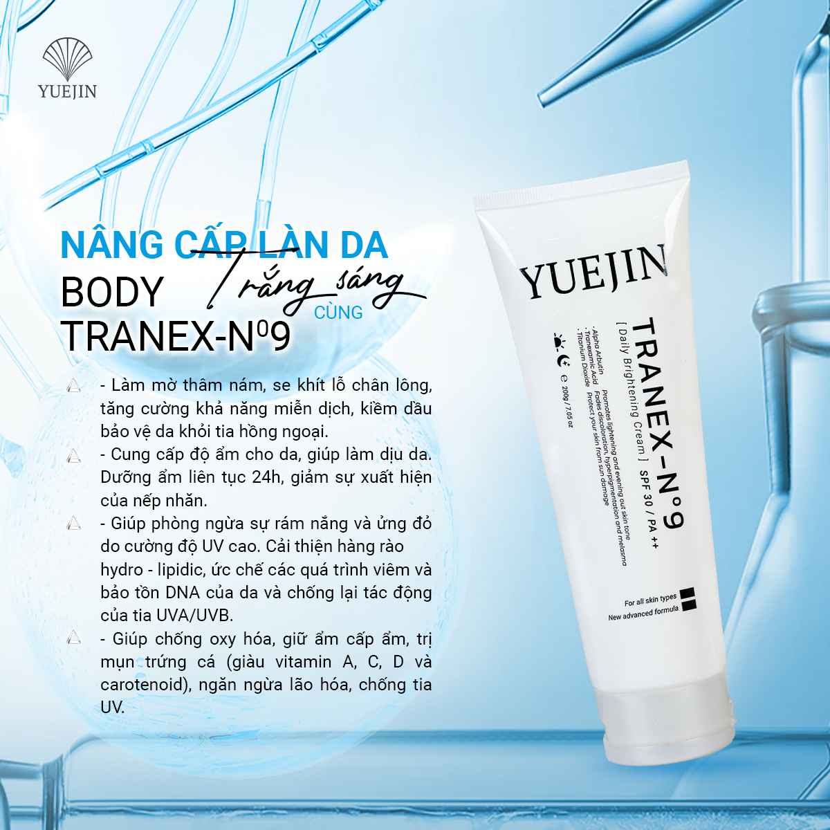 KEM DƯỠNG TRẮNG DA BODY TRANEX-NO9 - Yuejin Kem dưỡng body TRANEX-No9 sẽ tác động sâu vào lớp biểu bì, loại bỏ đi các tế bào chết, tế bào già cỗi của da, giúp