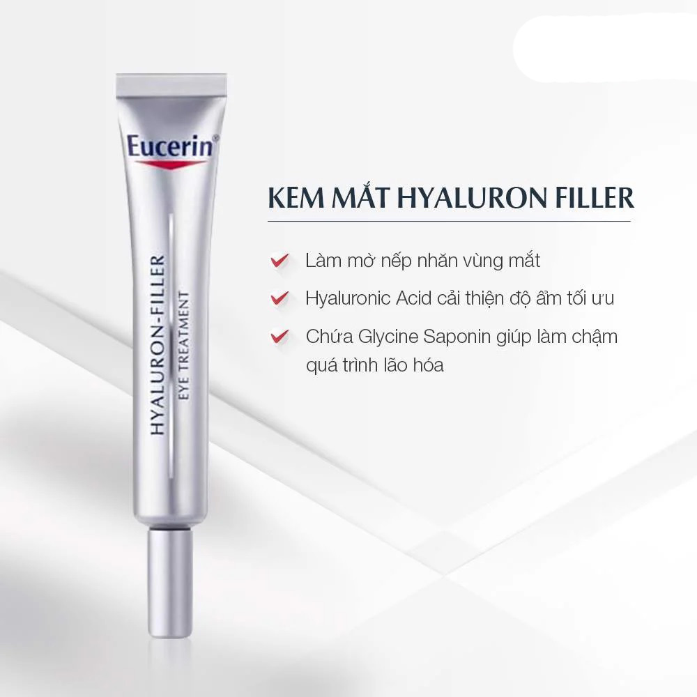 - Kem Ngăn Ngừa Lão Hóa Da Vùng Mắt Eucerin Hyaluron - Filler Eye (15ml) là giải pháp chăm sóc hữu hiệu vùng da quanh mắt khỏi các tác nhân gây ra nếp nhăn, vết