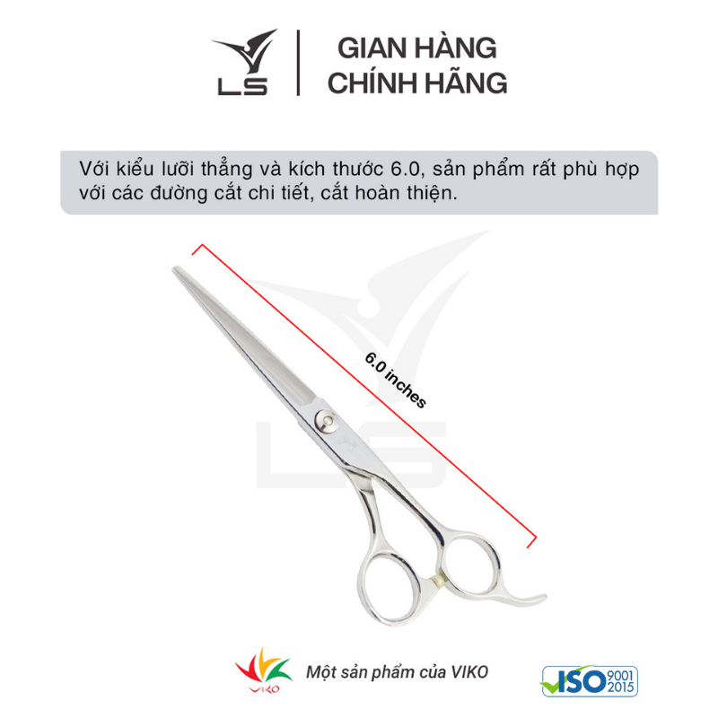 Với kiểu lưỡi thẳng và kích thước 6.0, sản phẩm rất phù hợp với các đường cắt thẳng (blunt cut). Dòng kéo cắt tóc cao cấp VLS luôn đảm bảo chất lượng (cắt không chạy