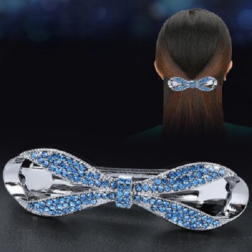 ✨Kẹp tóc đính đá hình nơ vô cực màu xanh đen - Kẹp tóc nữa sau sang trọng
