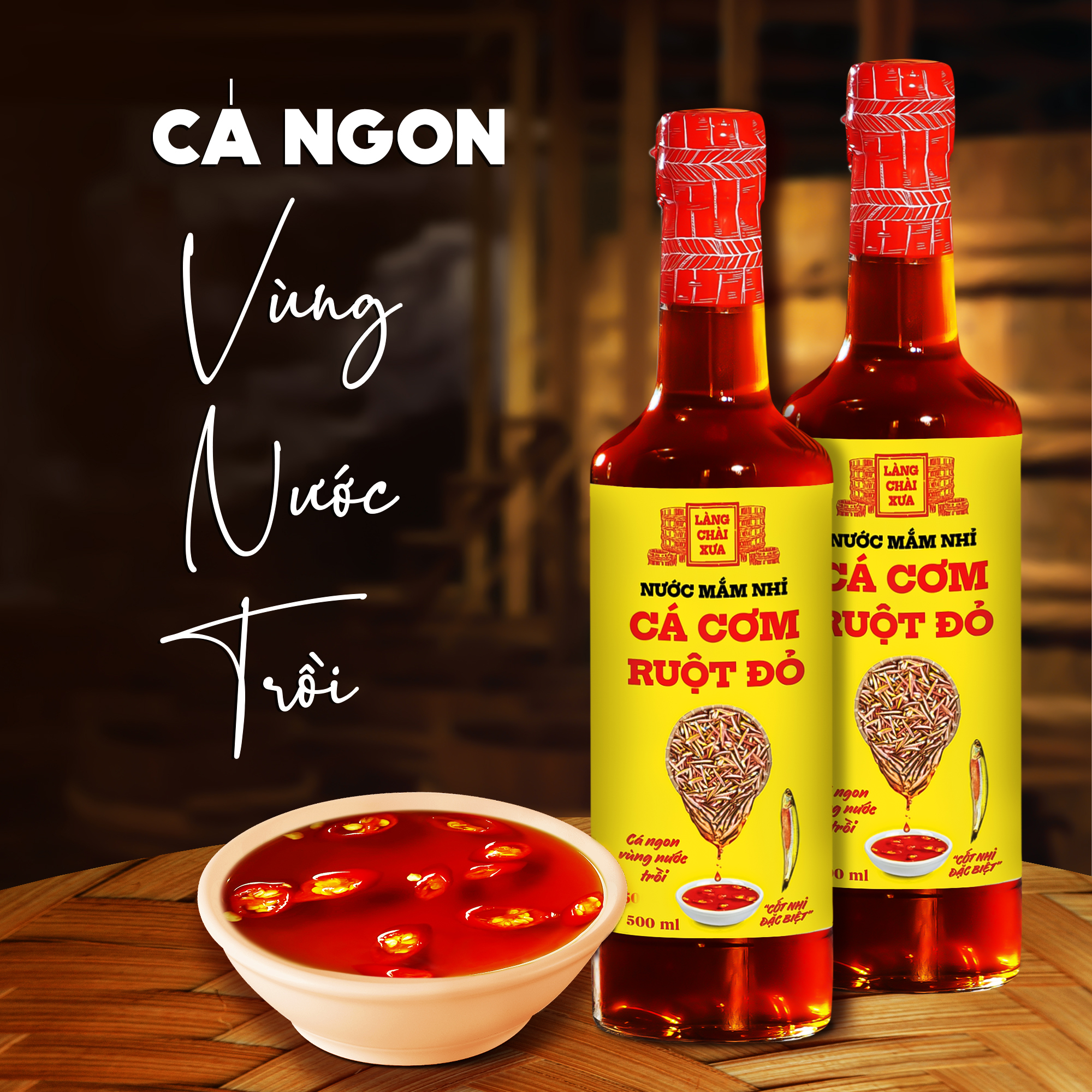 [THÙNG 6 CHAI] Nước mắm nhỉ cá cơm ruột đỏ Làng Chài Xưa 500ml chai thủy tinh cá cơm vàng ngon vùng nước trồi 300 năm truyền thống