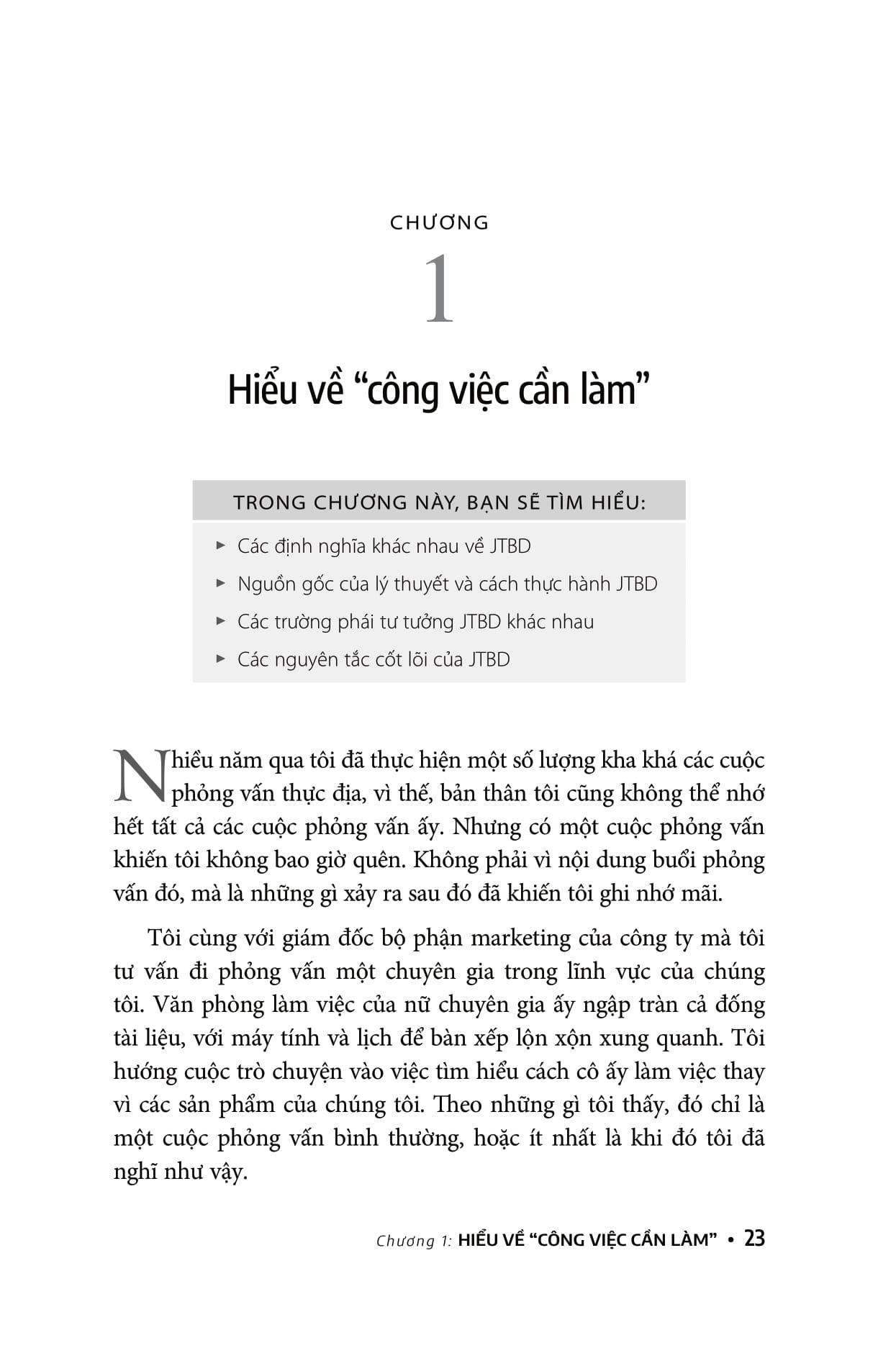 Đây là cuốn sách nhập môn hướng dẫn cho bạn về “Job to Be done” (hay JTBD), một lý thuyết đã được nghiên cứu gần 30 năm. Cuốn sách tập hợp các phương pháp đang được thực hành hiện nay mà tác giả Jim Kalbach gọi là “các chiến thuật”, mượn cách nói ẩn dụ “sổ tay chiến thuật” trong thể thao. Về cơ bản, chiến thuật là các kỹ thuật riêng lẻ tạo nền tảng để thực hiện JTBD.