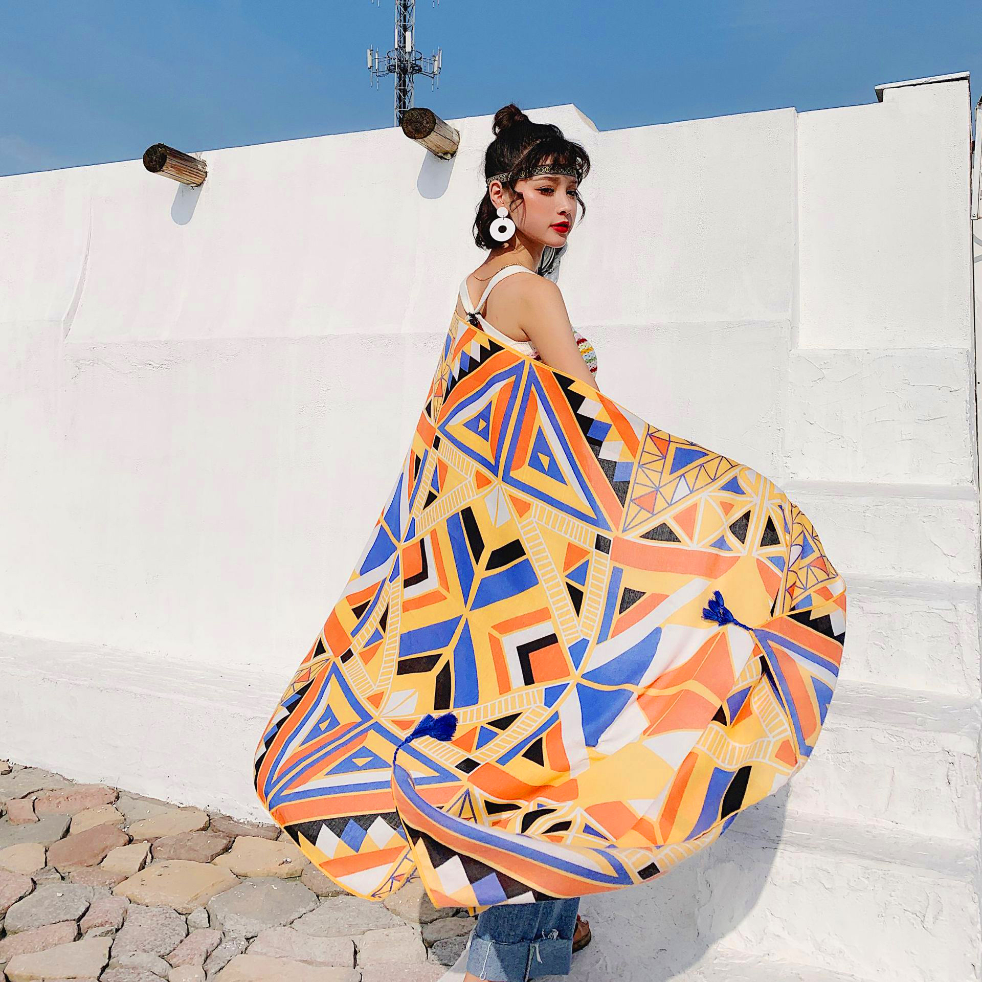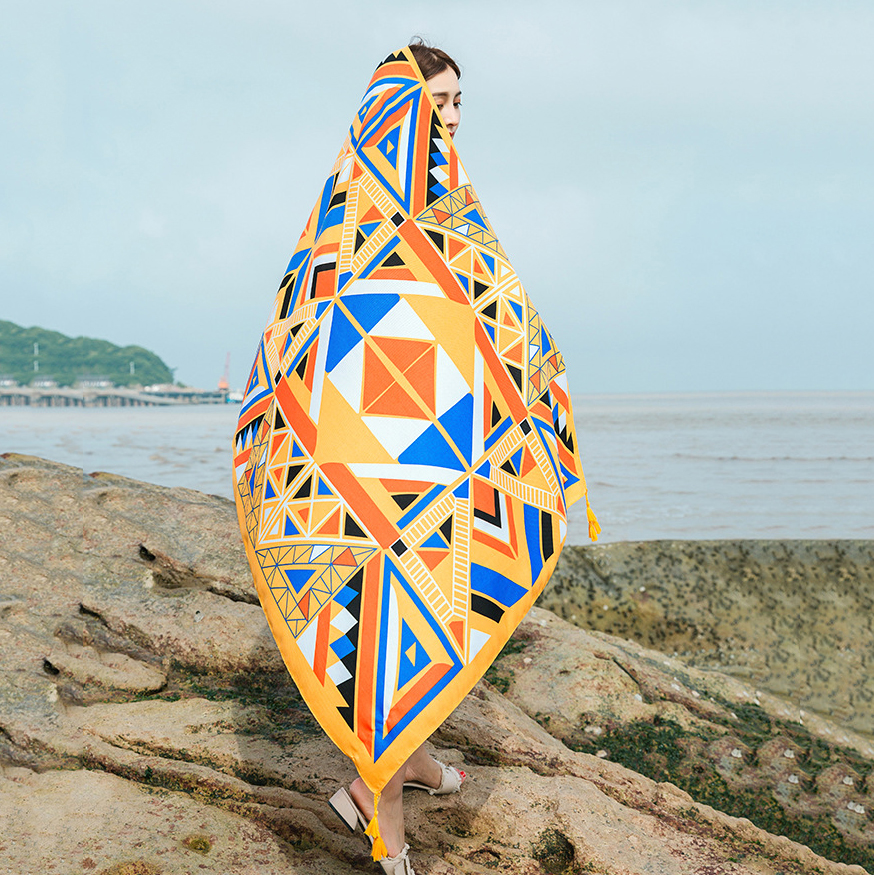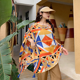 Khăn choàng cổ phong cách cổ điển 90x90cm Khăn sử dụng 4 mùa: làm áo hoặc váy với bikini, chùm đầu đi biển chống nắng, tạo dáng lên hình nổi bật với kính râm Hè