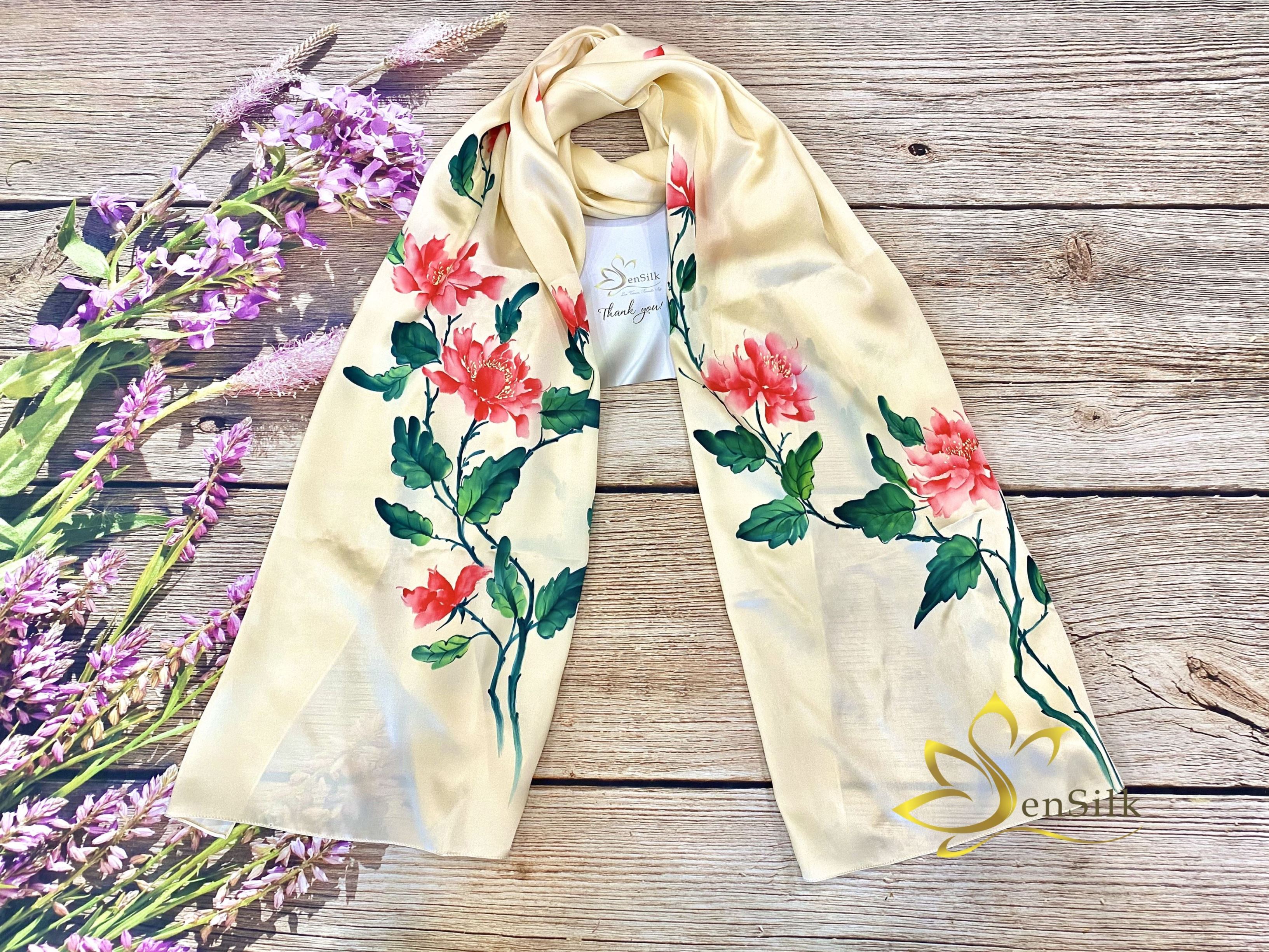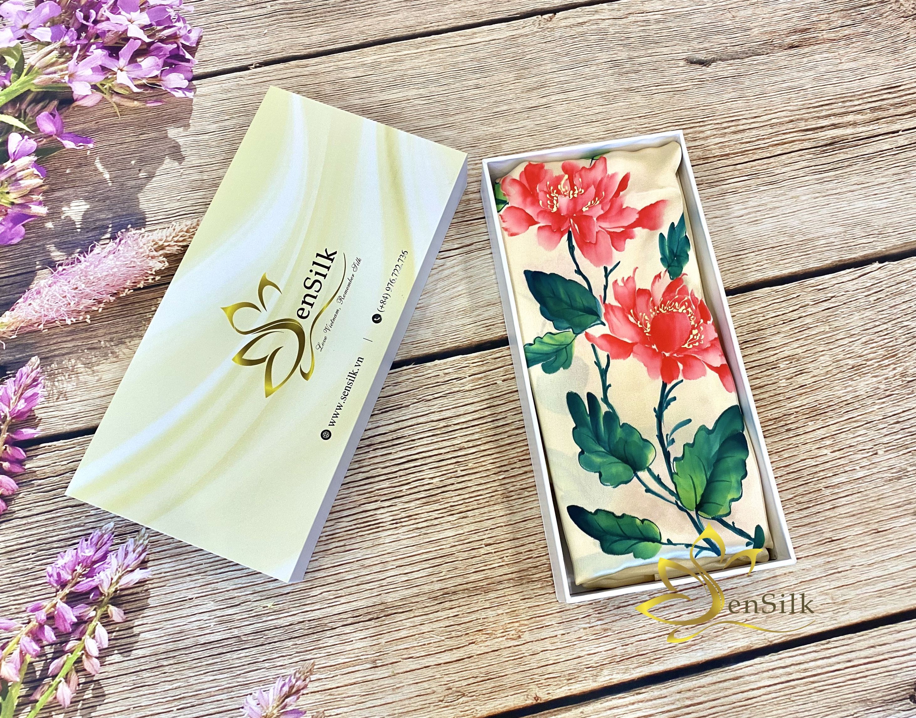 Khăn Lụa Vẽ Tay Hoa Mẫu Đơn SenSilk – Quà Việt Nam được xem là loài hoa của sự vương giả, phú quý và giàu sang. Chính bởi vậy, mẫu đơn không chỉ được người ta ưa chuộng bởi vẻ đẹp, khí chất đặc biệt mà còn bởi những ý nghĩa tốt lành mà nó mang lại.!