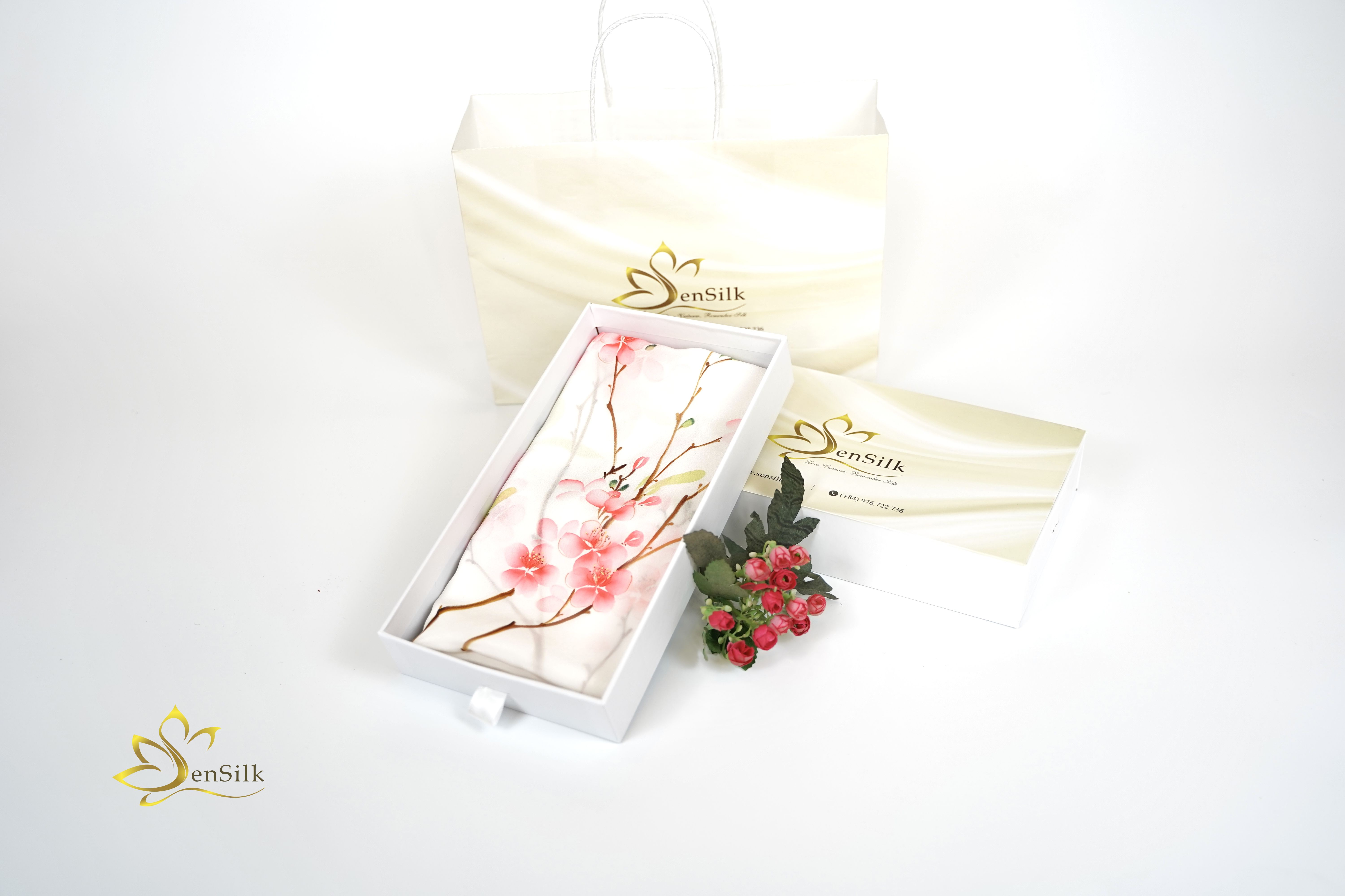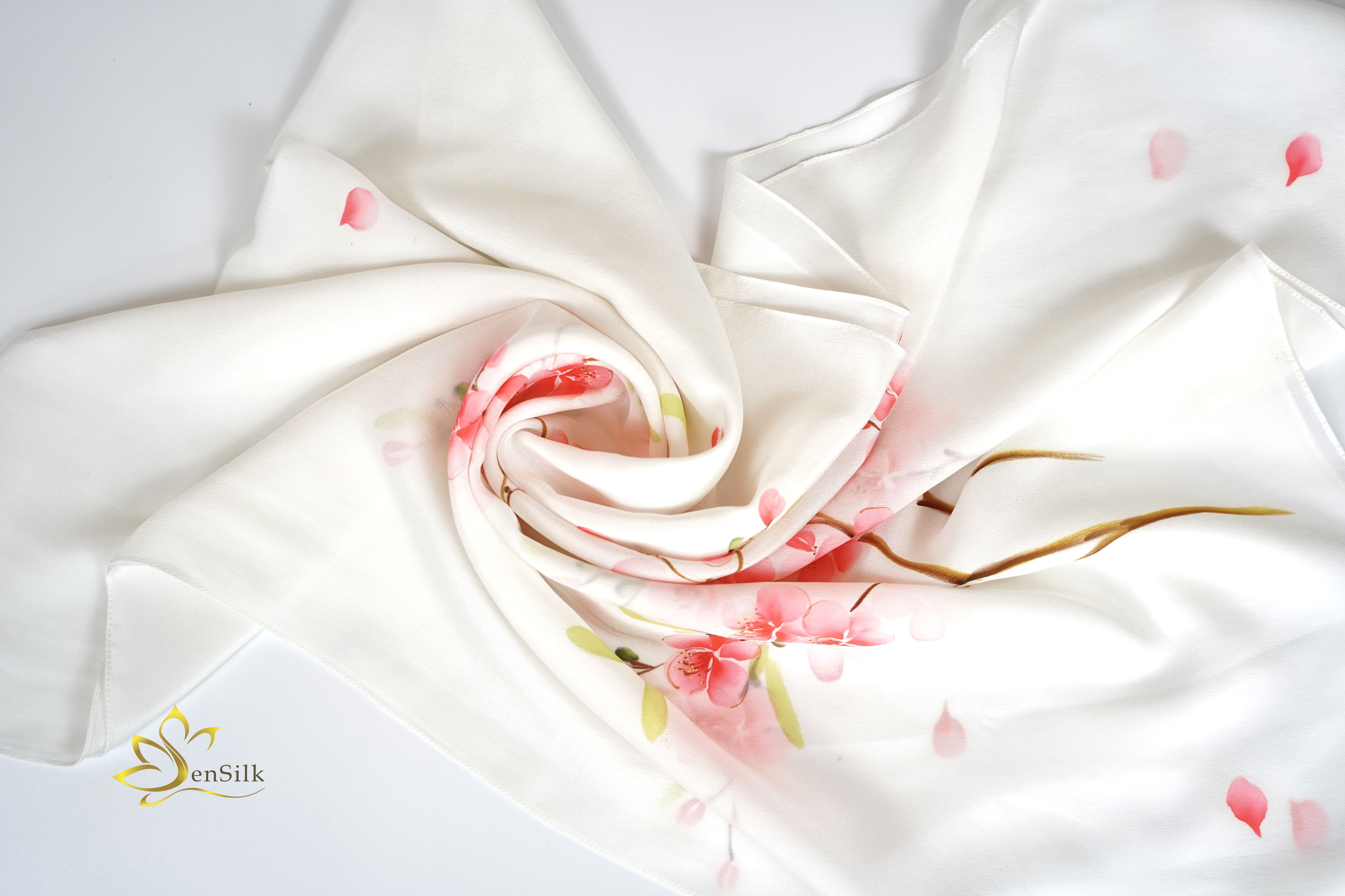 Khăn Lụa Vẽ Hoa Đào SenSilk làm một tác phẩm nghệ thuật có 1 không 2 được tạo nên từ đôi bàn tay tài hoa của người họa sỹ kết hợp với khăn lụa tơ tằm Bảo Lộc