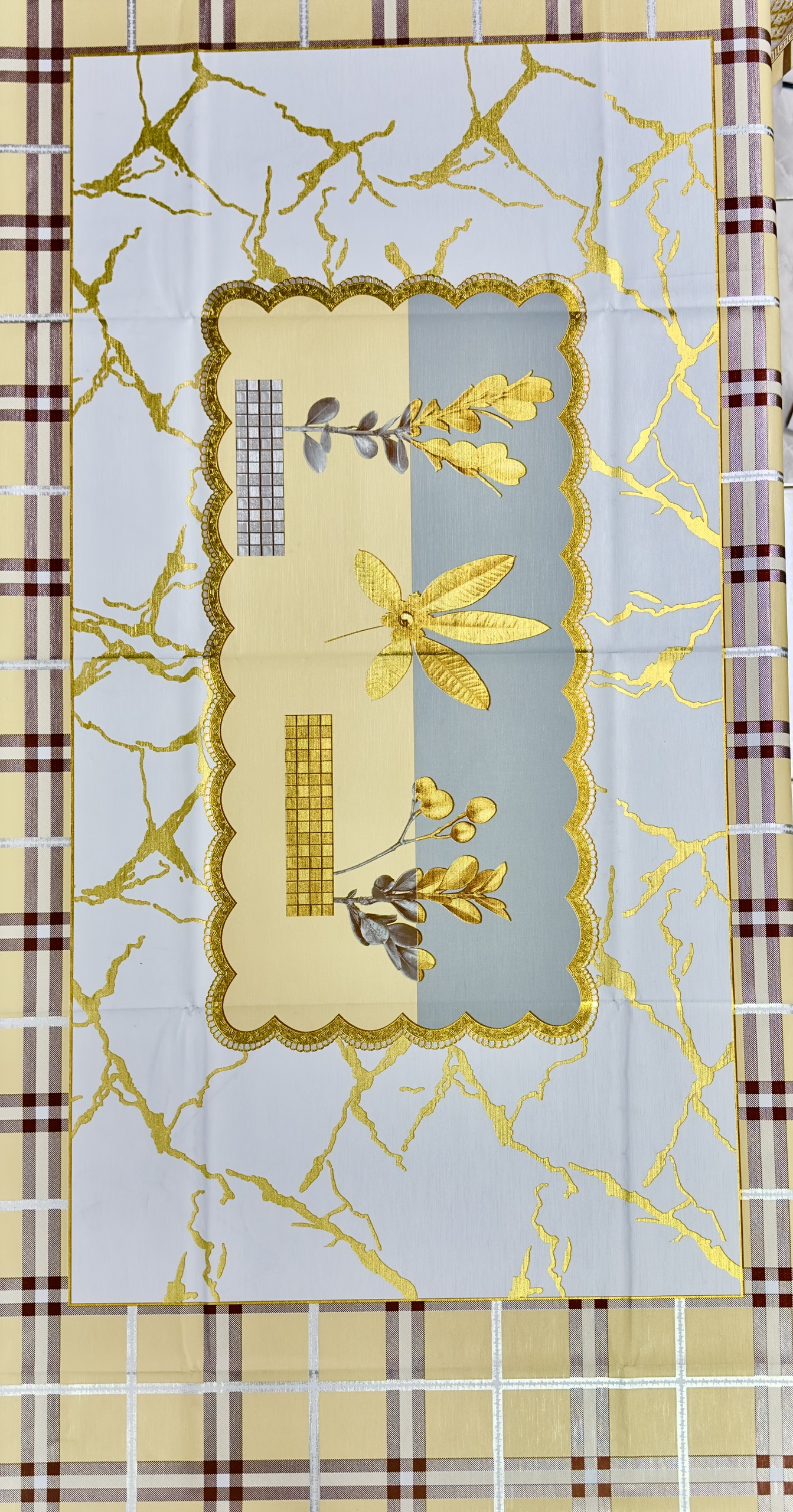 ✨Khăn trải bàn W.751 caro - nhũ vàng 90 x 150 cm, không thấm nước, dễ làm sạch