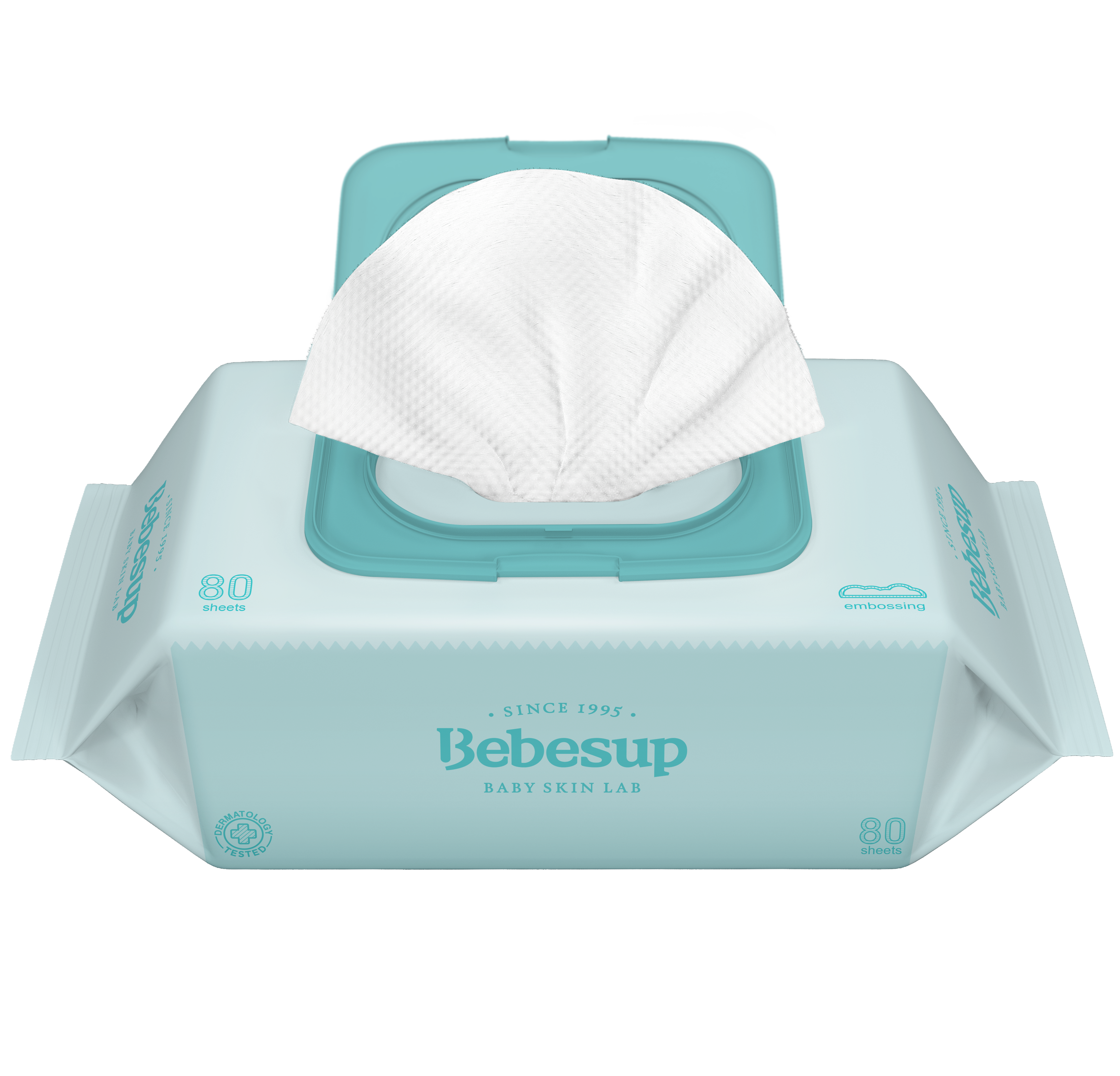 BEBESUP là loại khăn ướt cho cho trẻ em , được bình chọn là sản phẩm có lượng tiêu thụ cao trong tất cả các sản phẩm khăn ướt của Bebesup. Sản phẩm được làm bằng vải dập nổi độ dày 50gsm, chứa chiết xuất từ những thực phẩm xanh, để giữ cho làn da của bé sạch sẽ và không gây kích ứng.