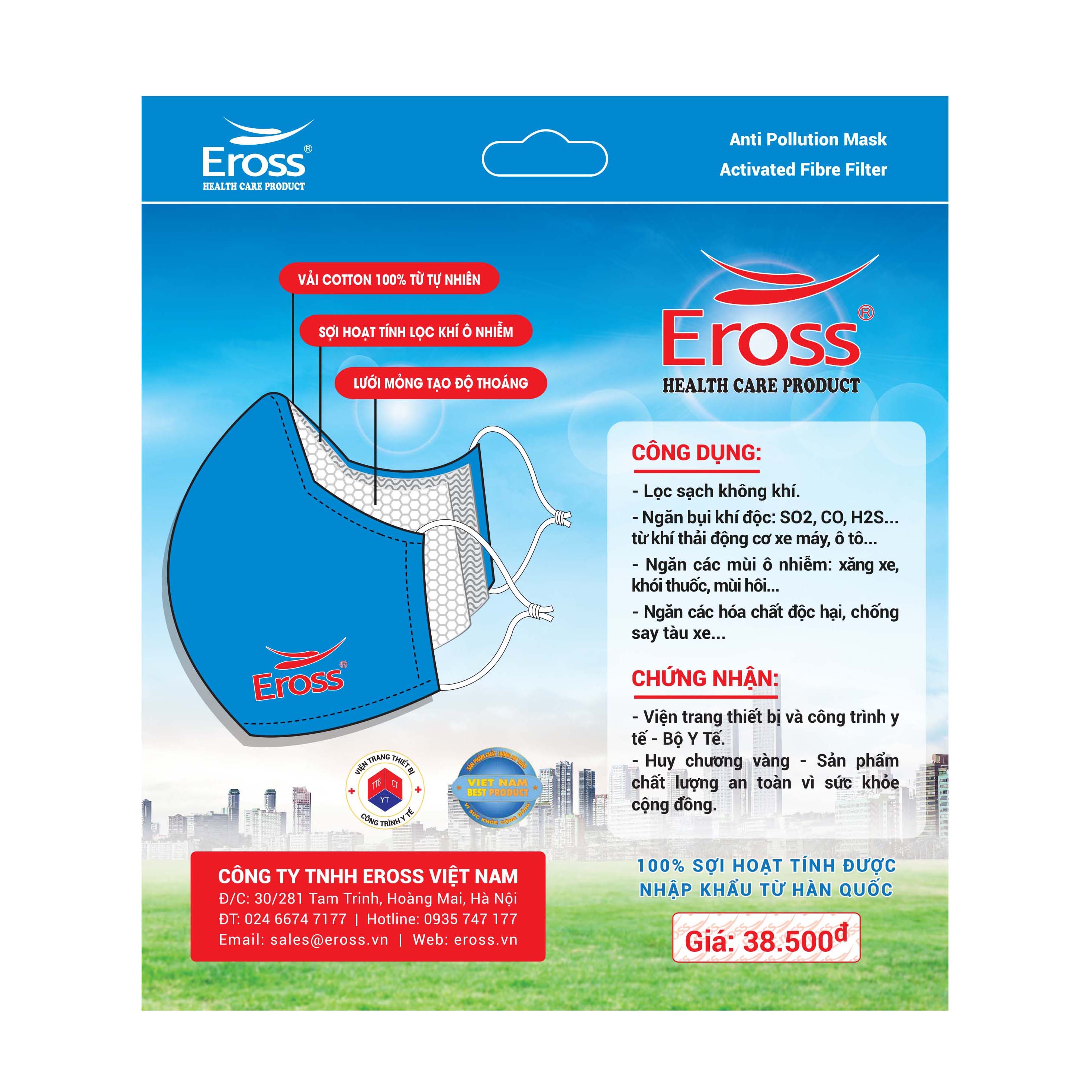 KHẨU TRANG SỢI HOẠT TÍNH EROSS - THƯƠNG HIỆU ĐƯỢC BỘ Y TẾ KHUYÊN DÙNG