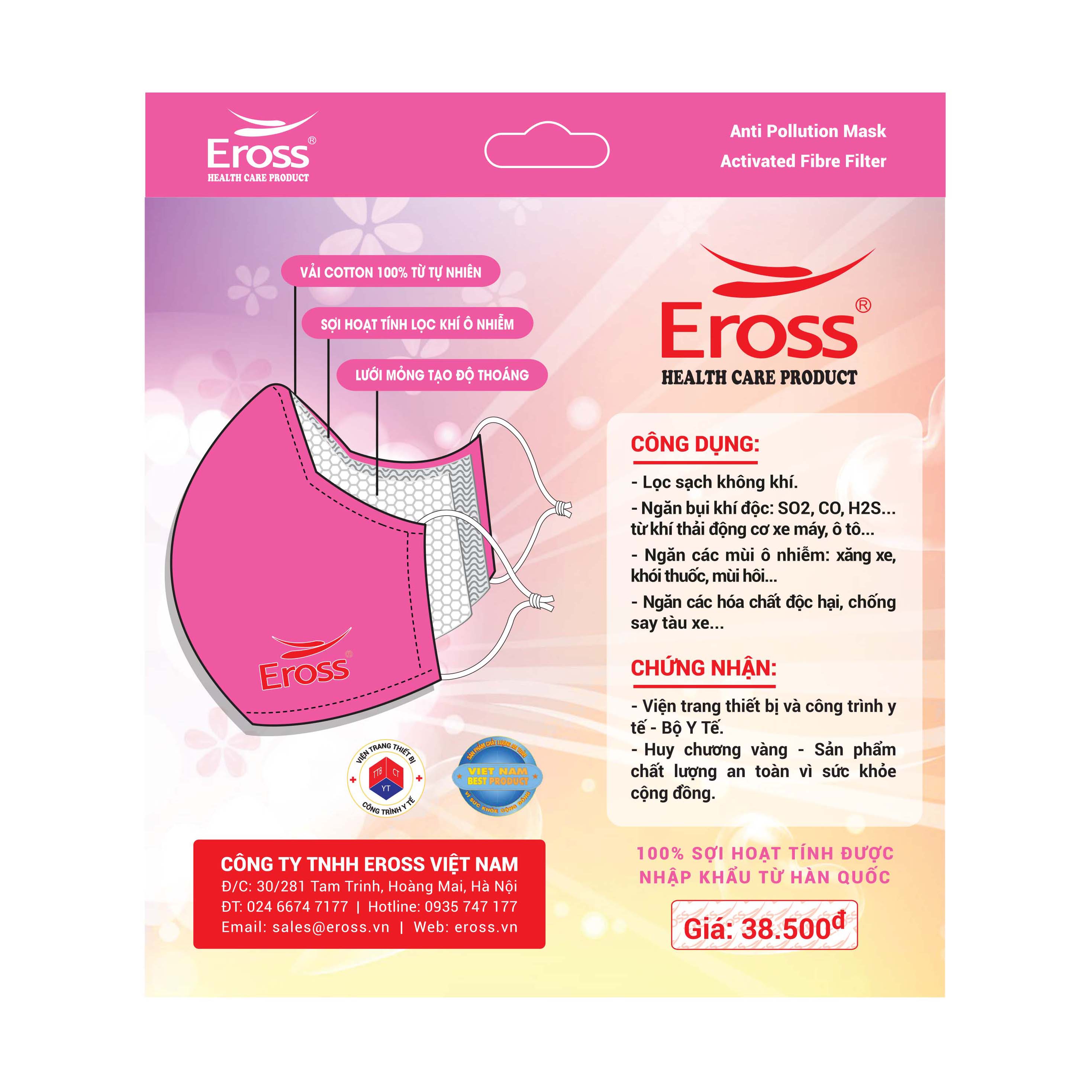 KHẨU TRANG SỢI HOẠT TÍNH EROSS - THƯƠNG HIỆU ĐƯỢC BỘ Y TẾ KHUYÊN DÙNG